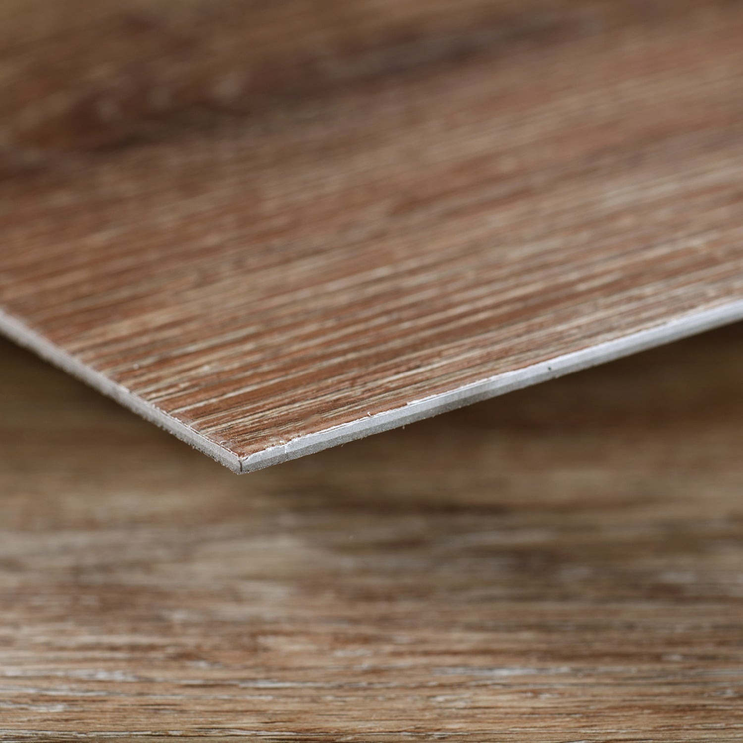 A: It has a 22 mil wear layer with a matte finish and embossed wood grain texture.