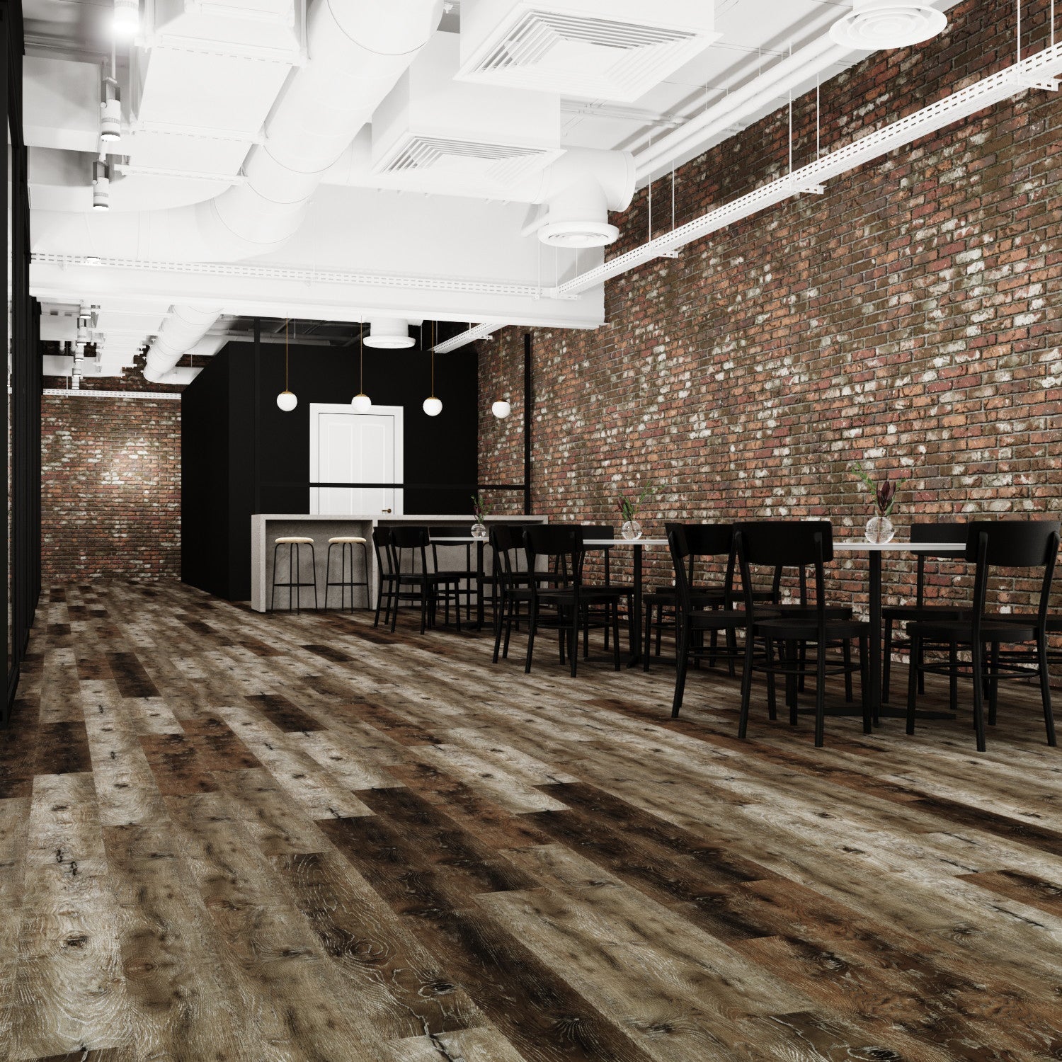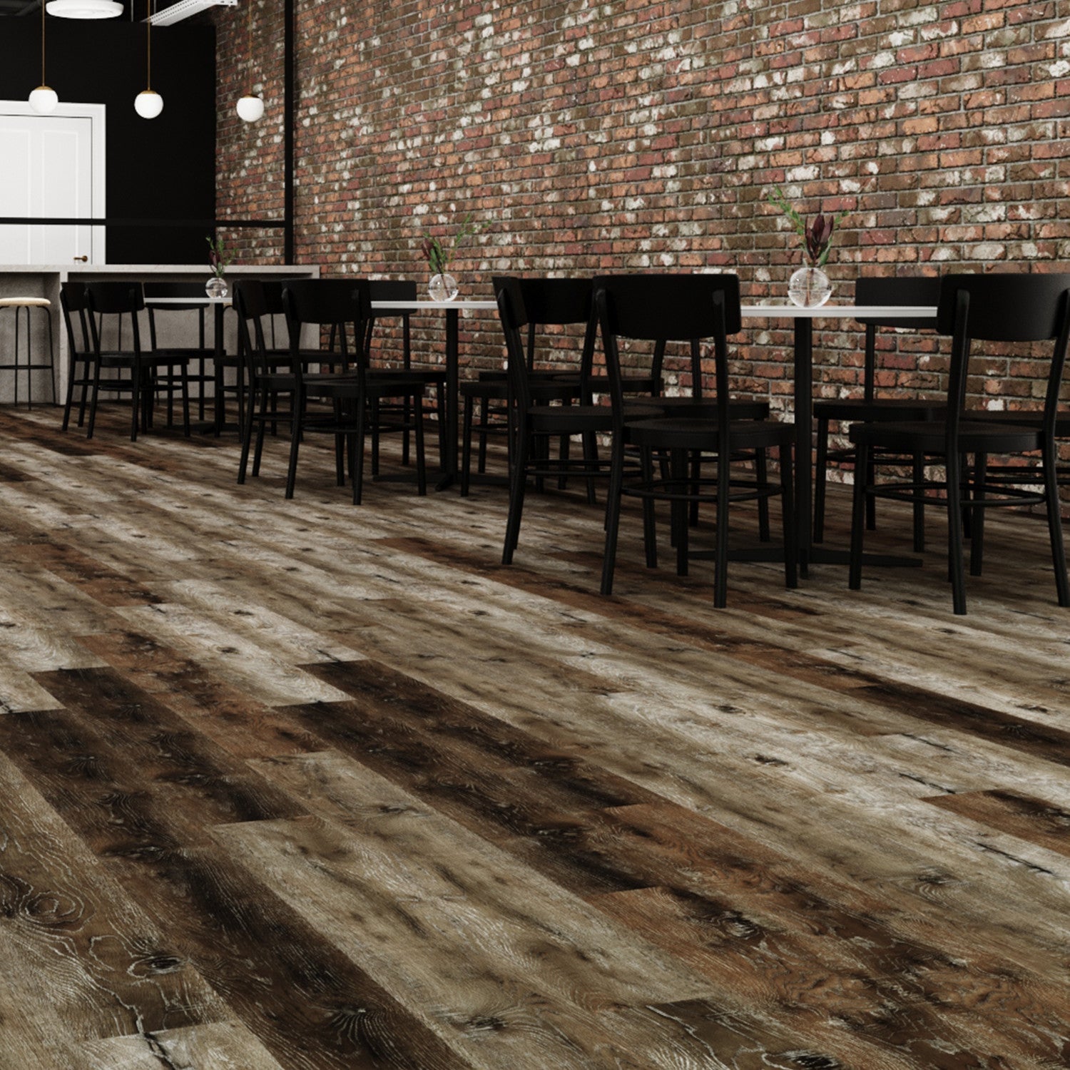 Durable GlueCore luxury vinyl planks from Lucida USA bring a rich Ombre wood look with embossed texture and a matte finish. At 3 mm thick with a 22 mil wear layer, these waterproof planks are built for busy residential and standard commercial spaces.
