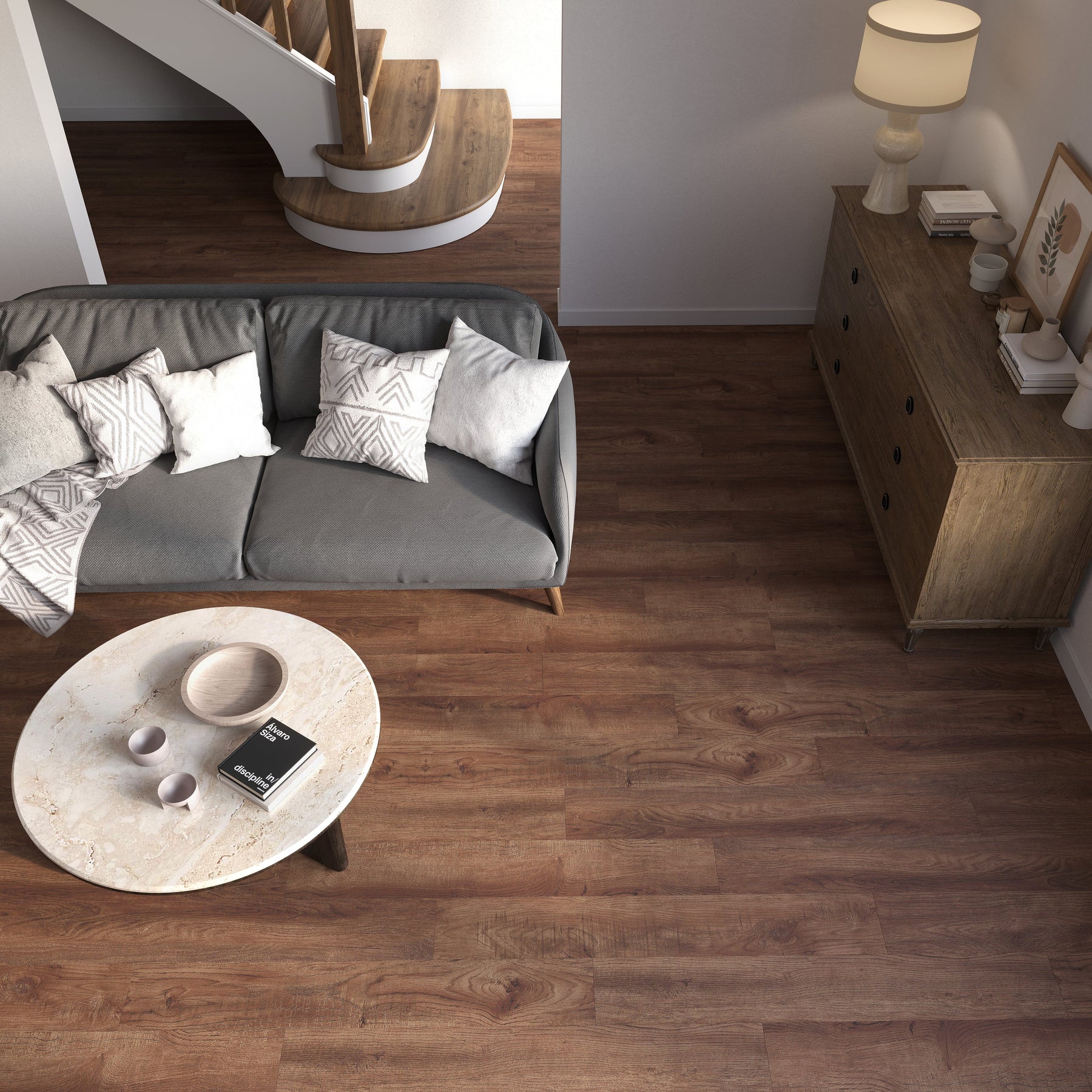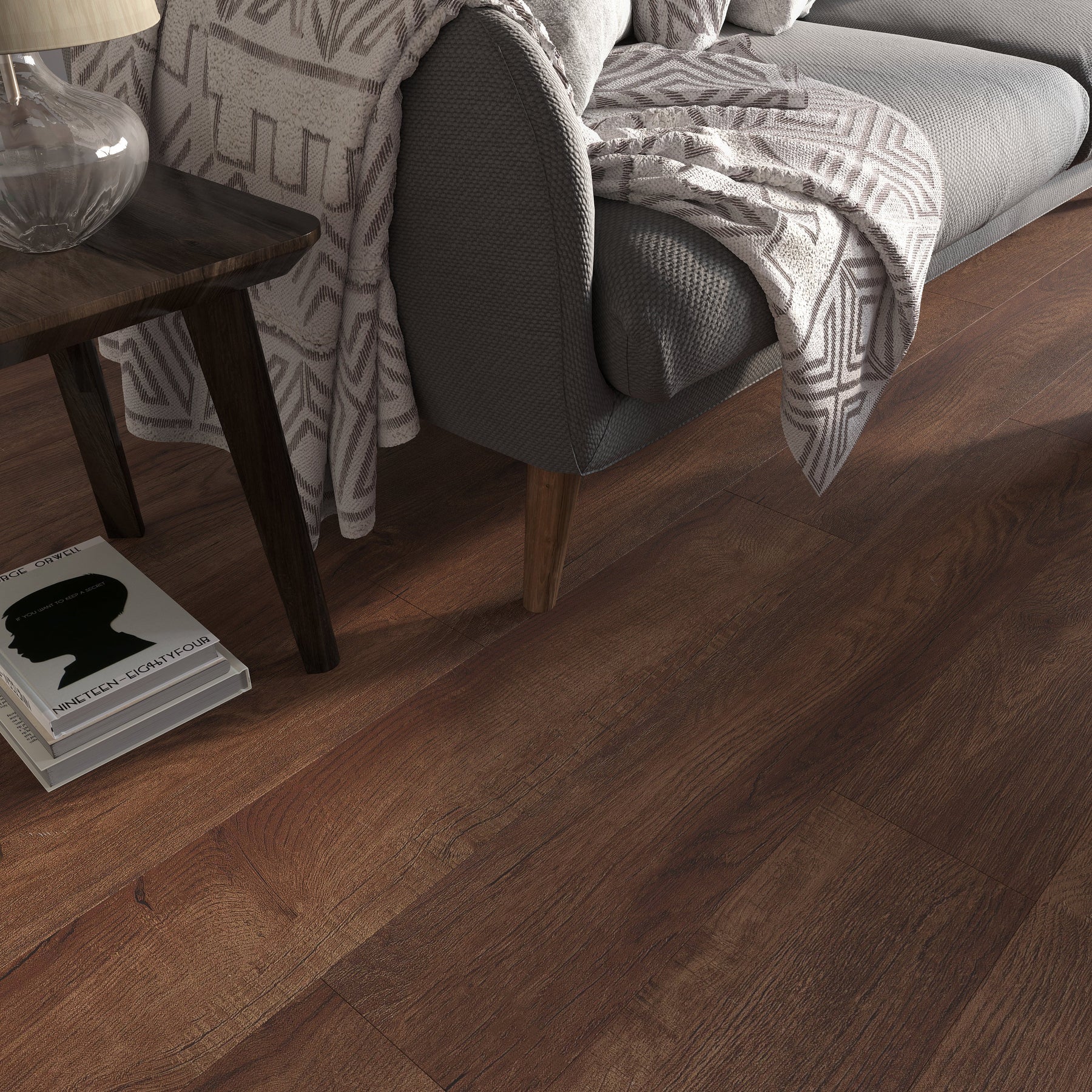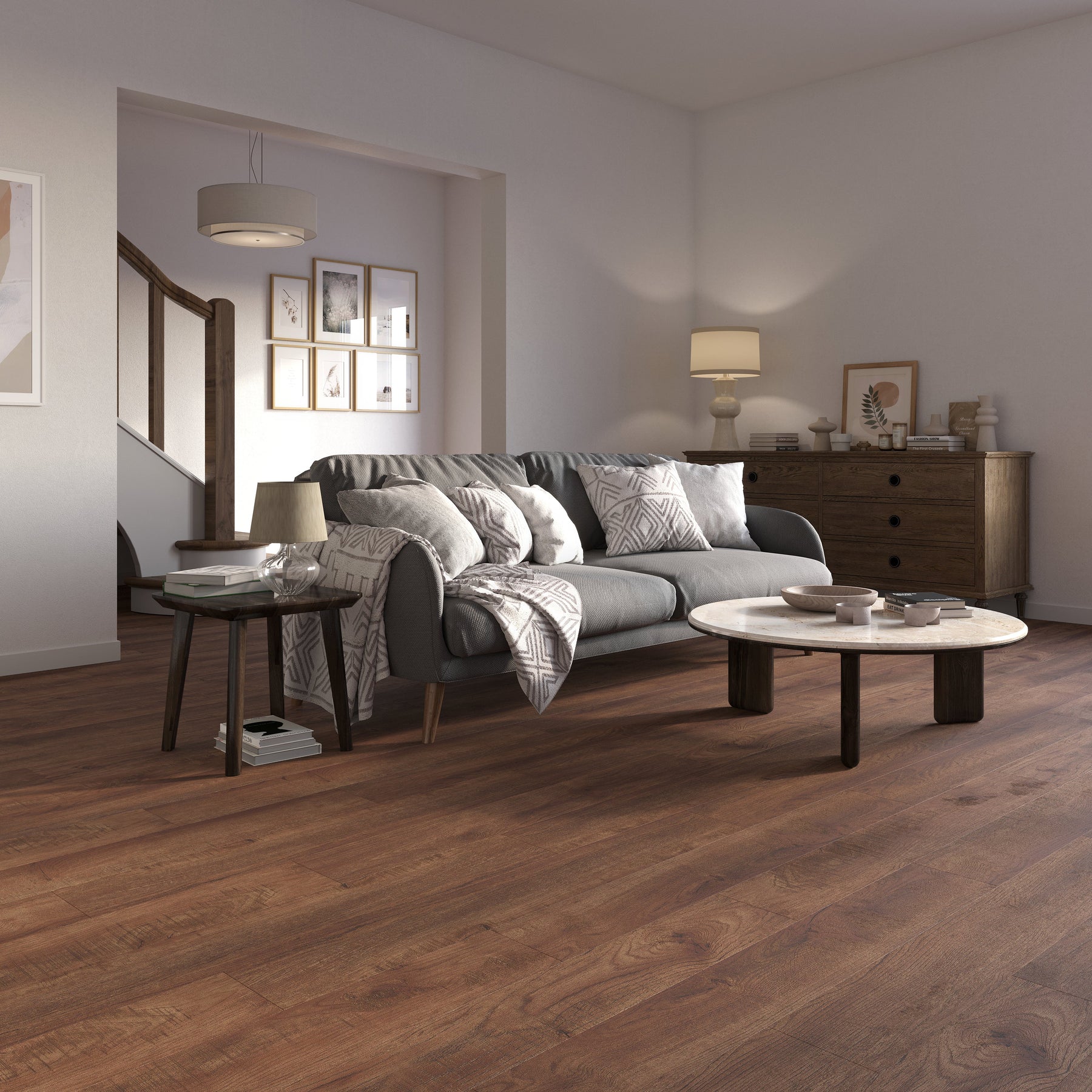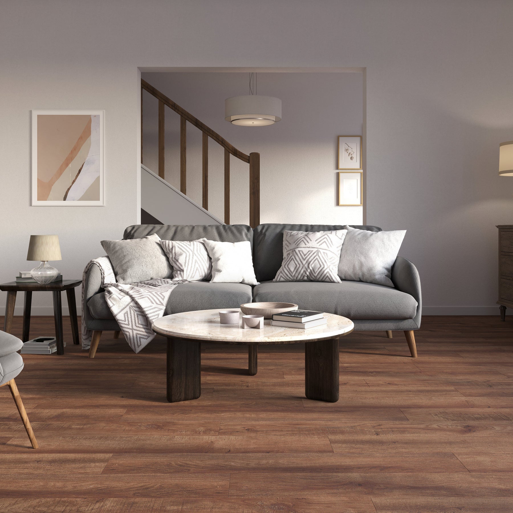 Rich American Oak tones in durable MaxCore luxury vinyl planks deliver waterproof performance and click-lock convenience. Wide 7.31-inch planks with embossed wood grain and a matte finish bring authentic warmth to residential and light commercial spaces.