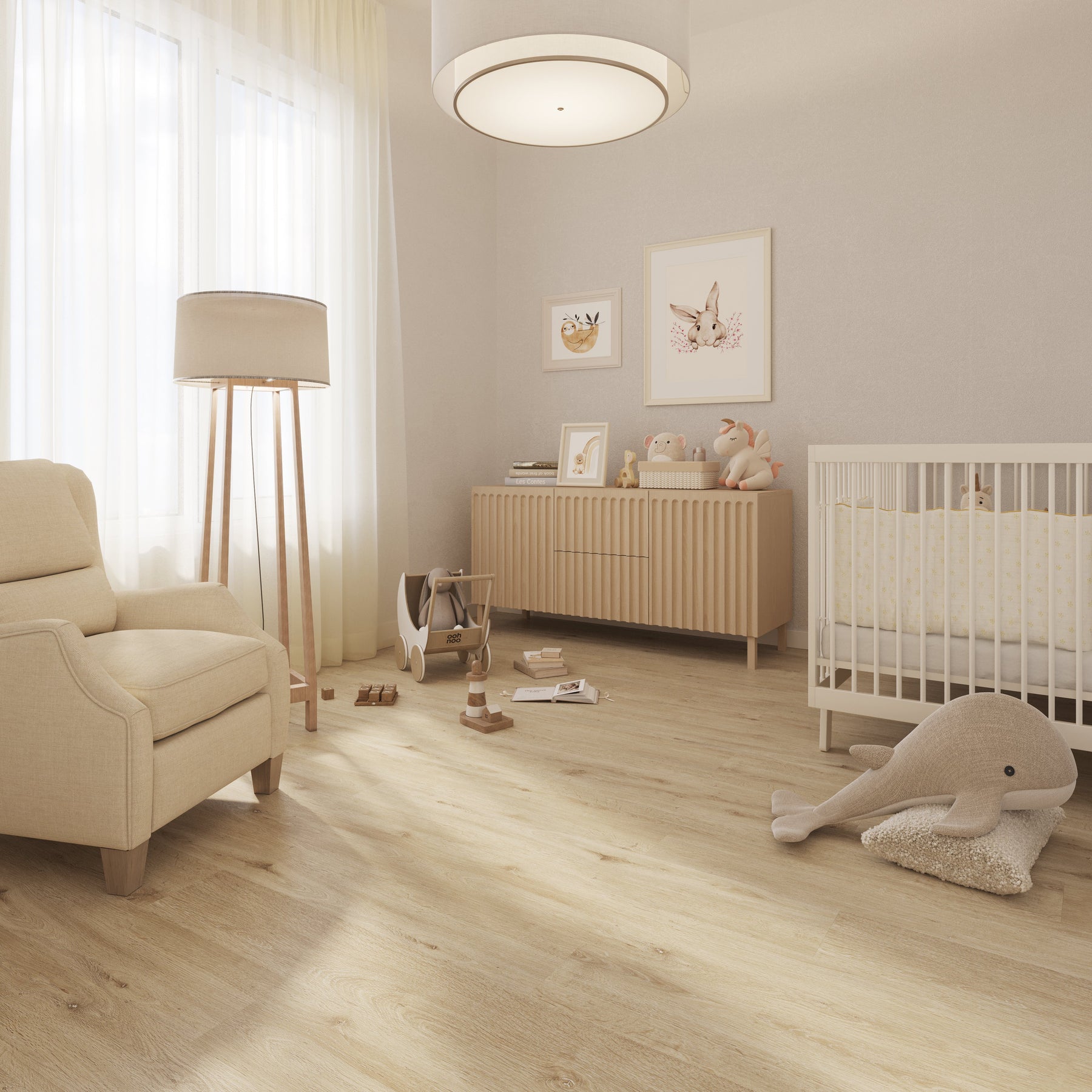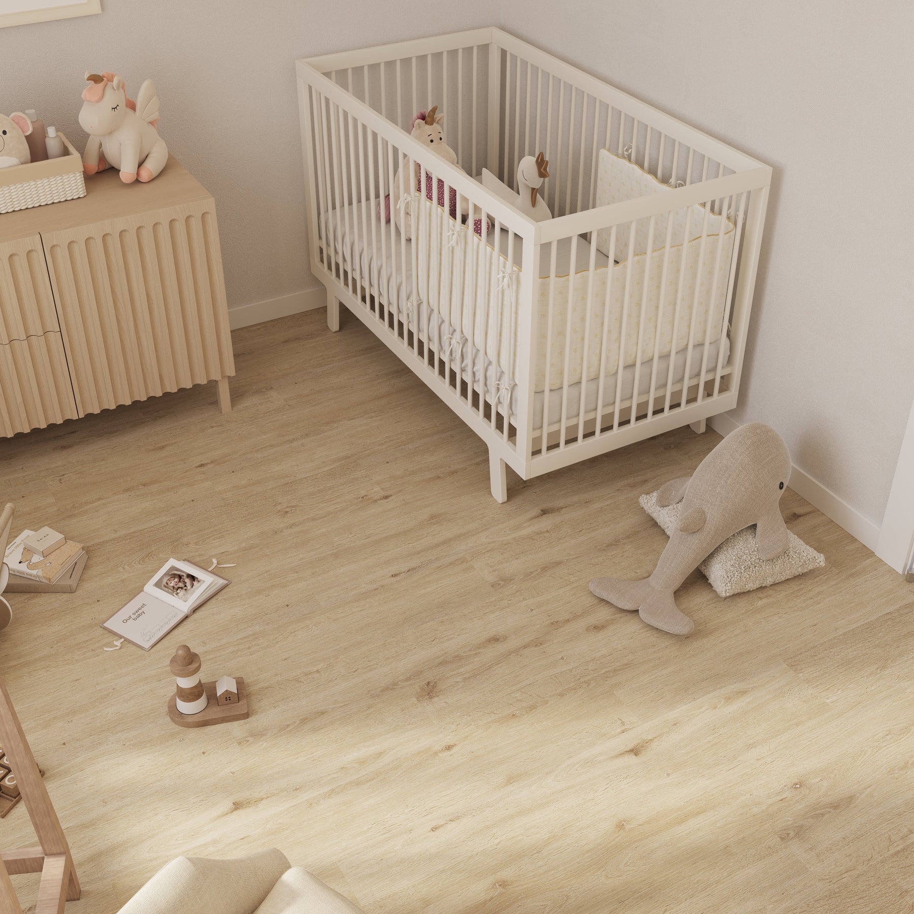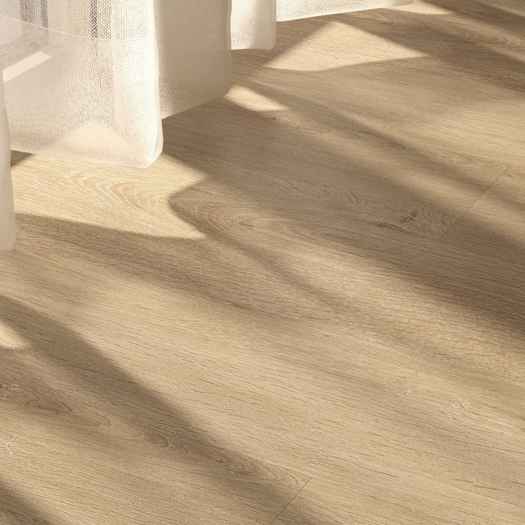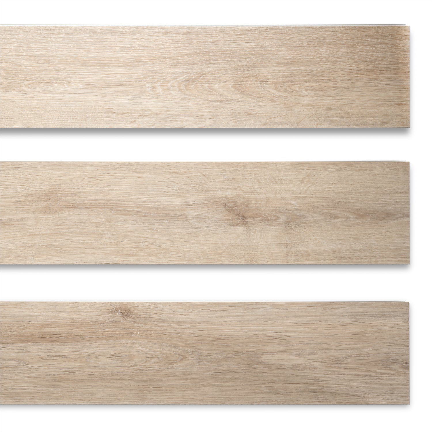 • Authentic Wood Look: Embossed wood-grain texture with a matte finish in a beige oak tone