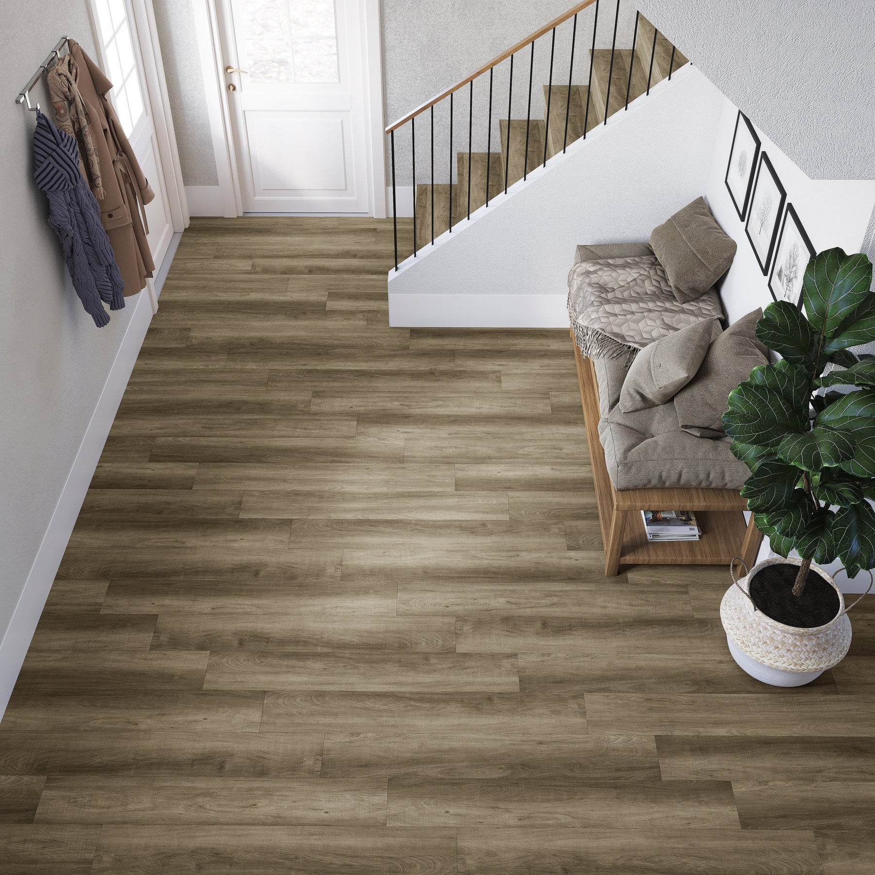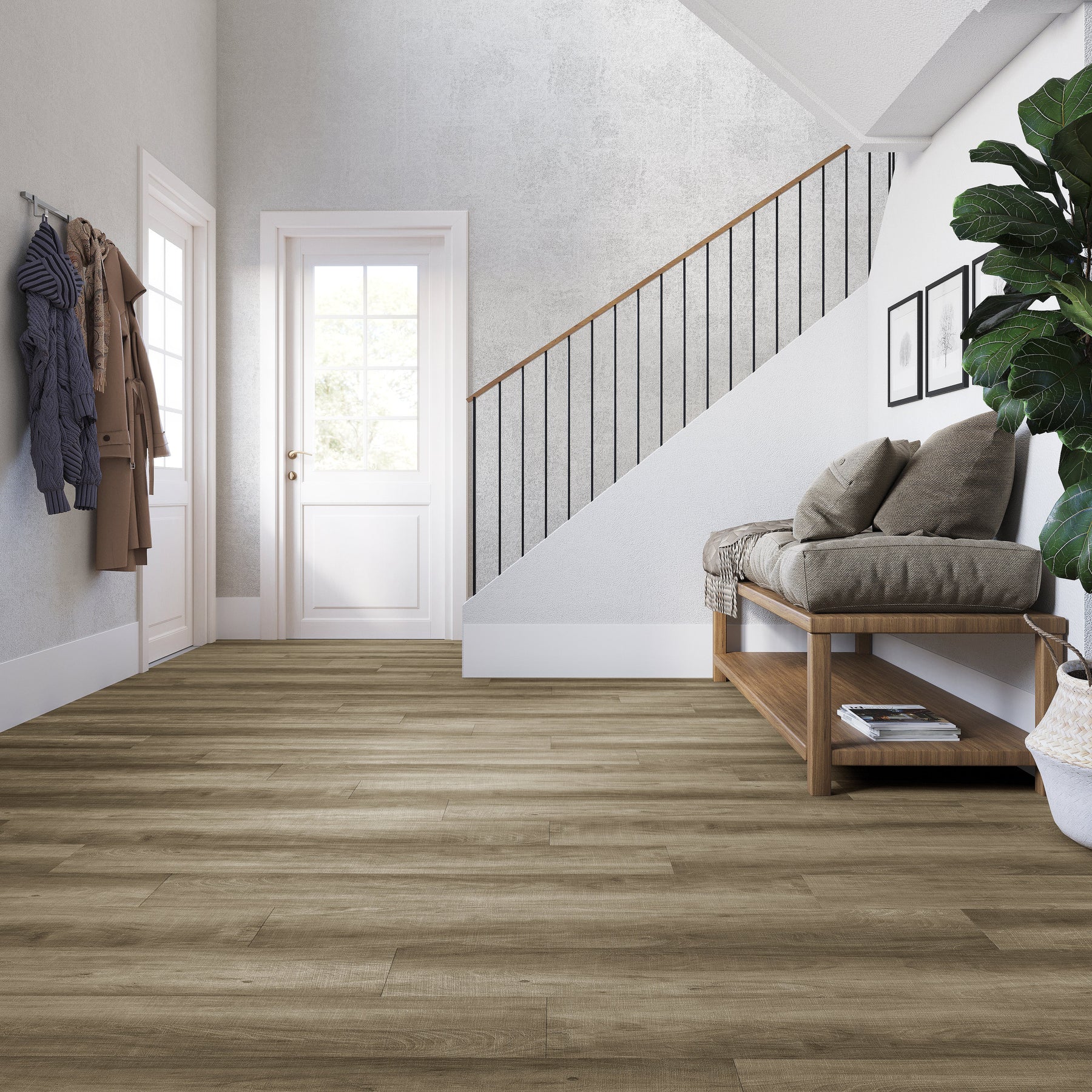 Durable wood-look luxury vinyl planks designed for waterproof performance and click-lock installation. The Maxcore Carnelian finish brings warm light-brown tones to any space while offering easy maintenance and resilient wear.