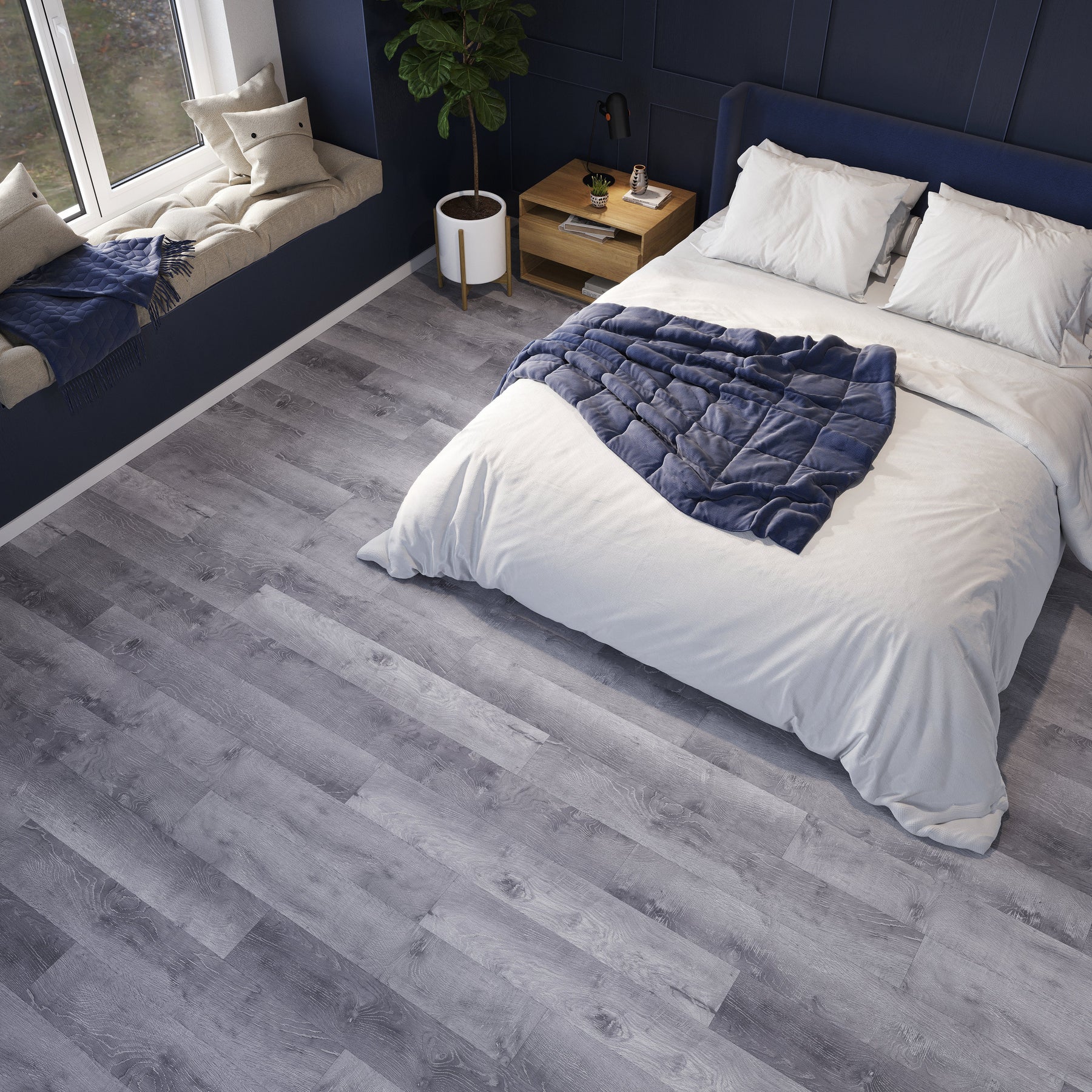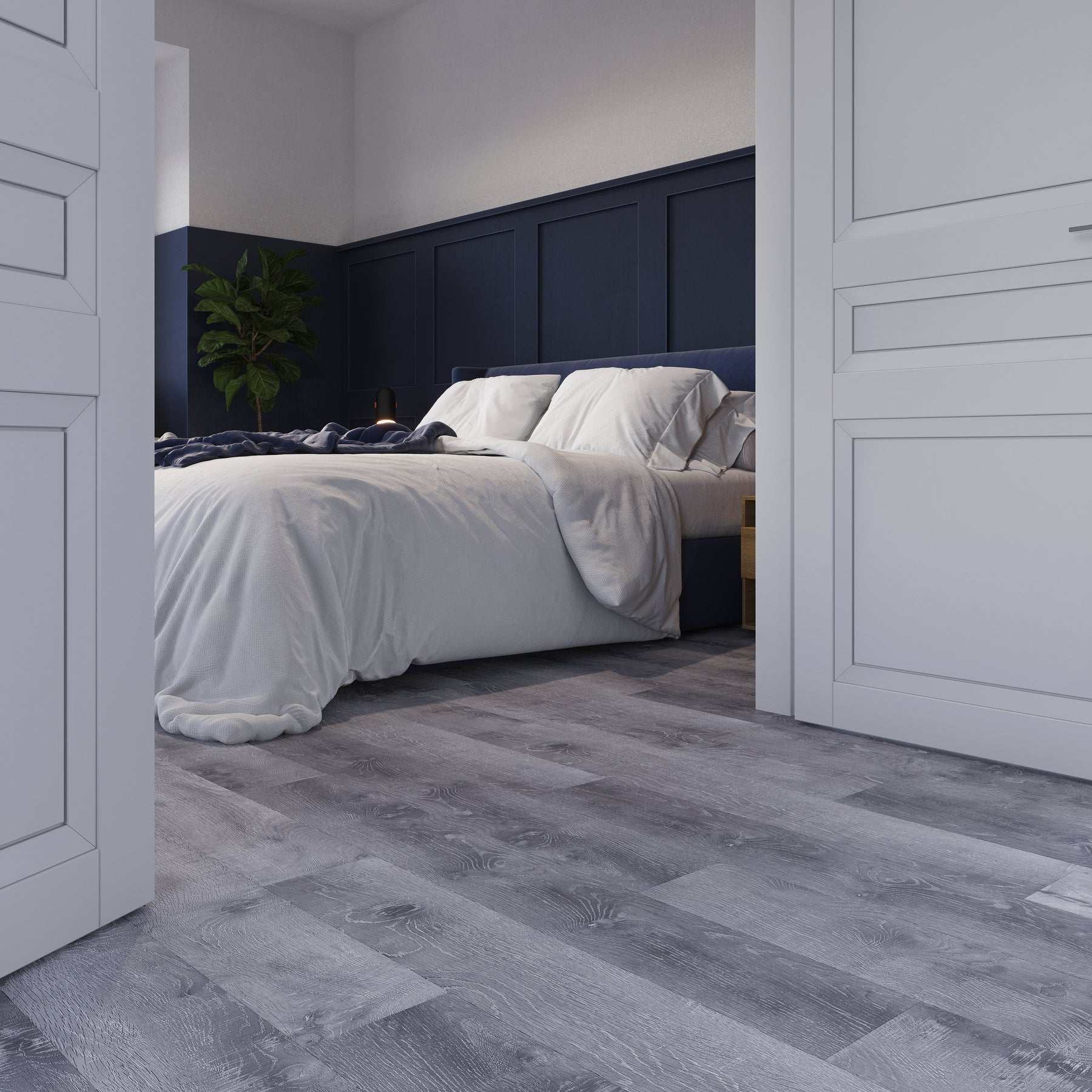 • Realistic Wood Look: Medium grey, embossed grain for natural texture and depth
