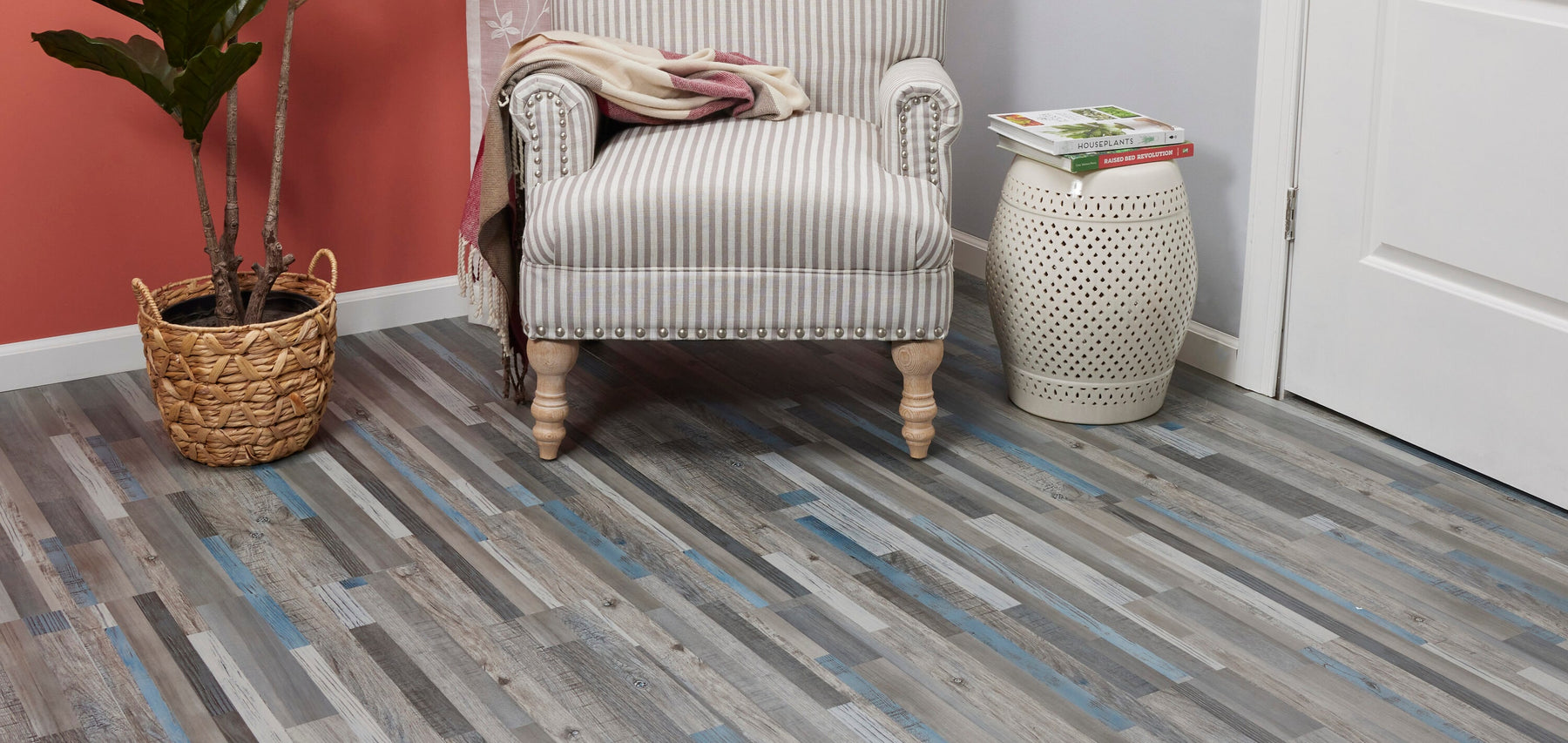 BaseCore Quilt introduces a fresh, artisanal wood aesthetic with moody greys and soft blue accents that instantly energize a room. The linear mosaic pattern becomes a conversation piece, adding texture and rhythm underfoot. Pair it with pale upholstery and sculptural ceramics to let the plank’s color play sing. It’s an easy, waterproof upgrade that feels tailored and luxuriously livable.