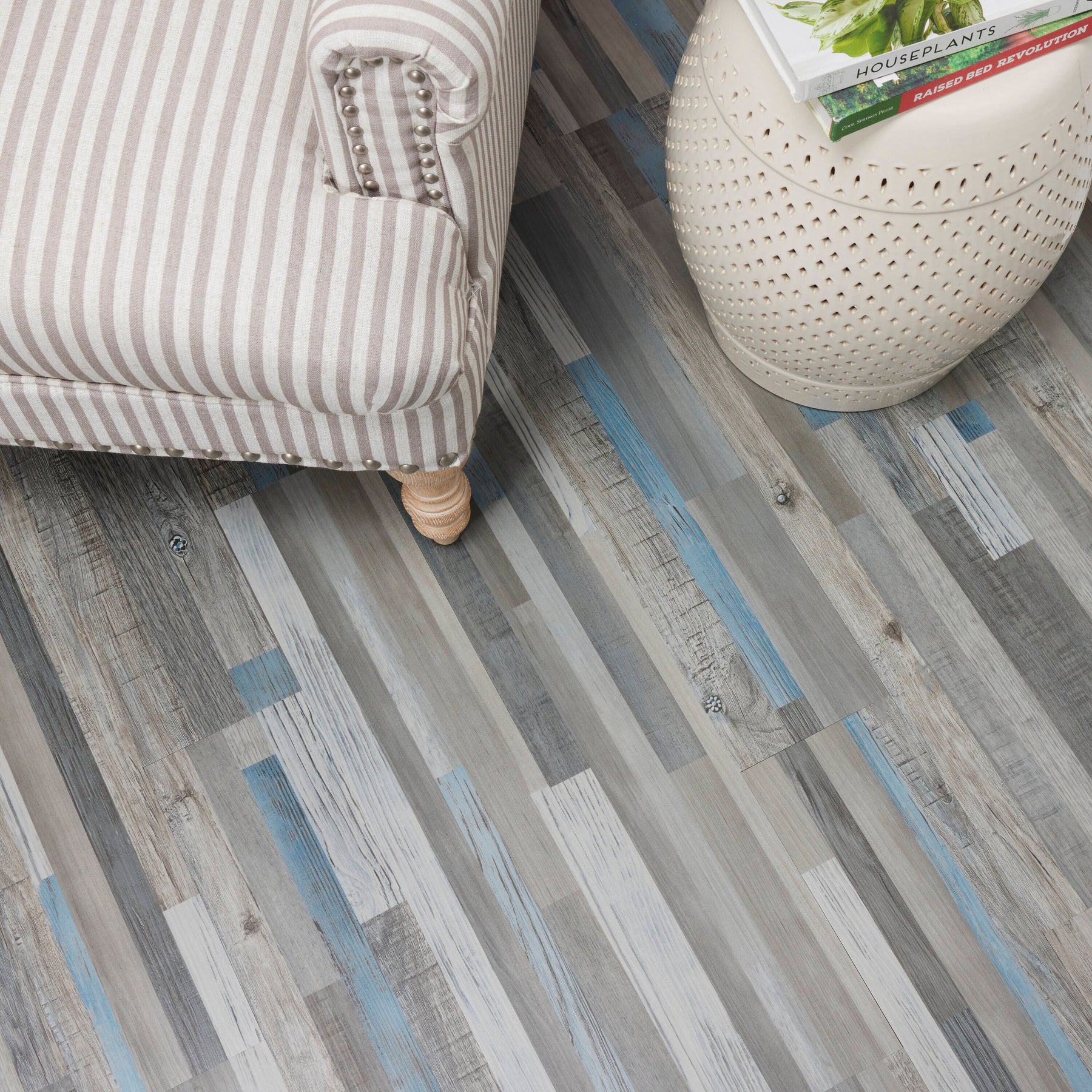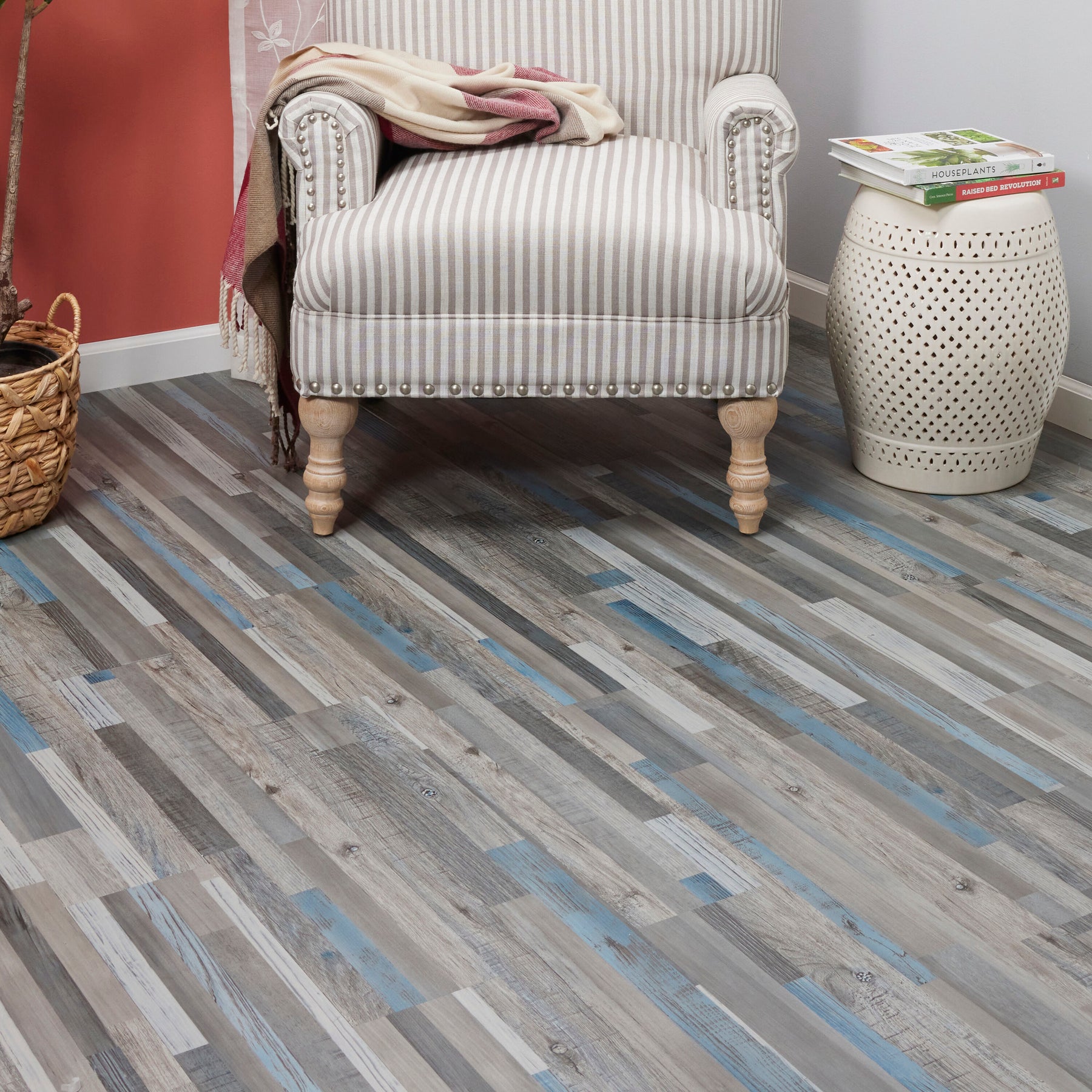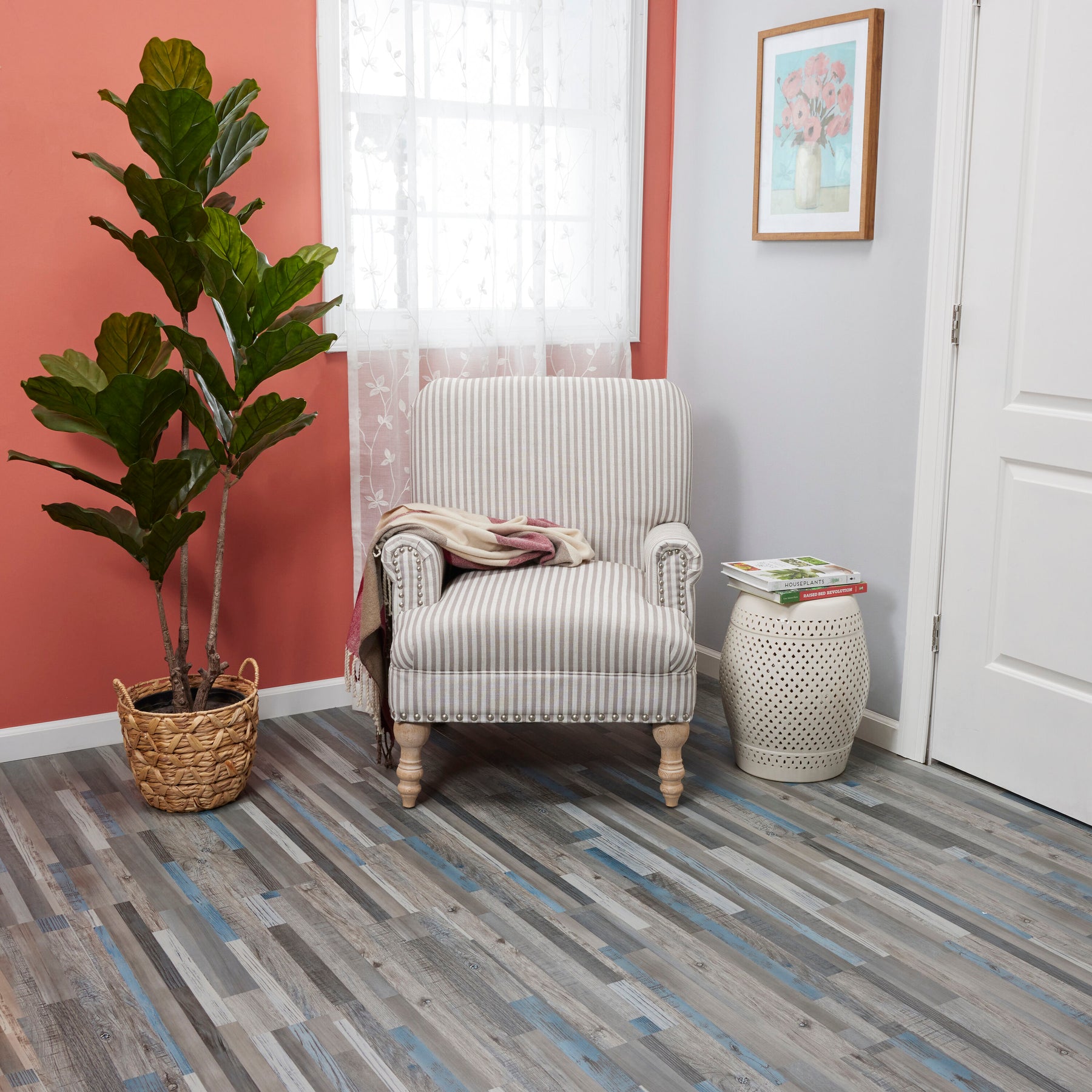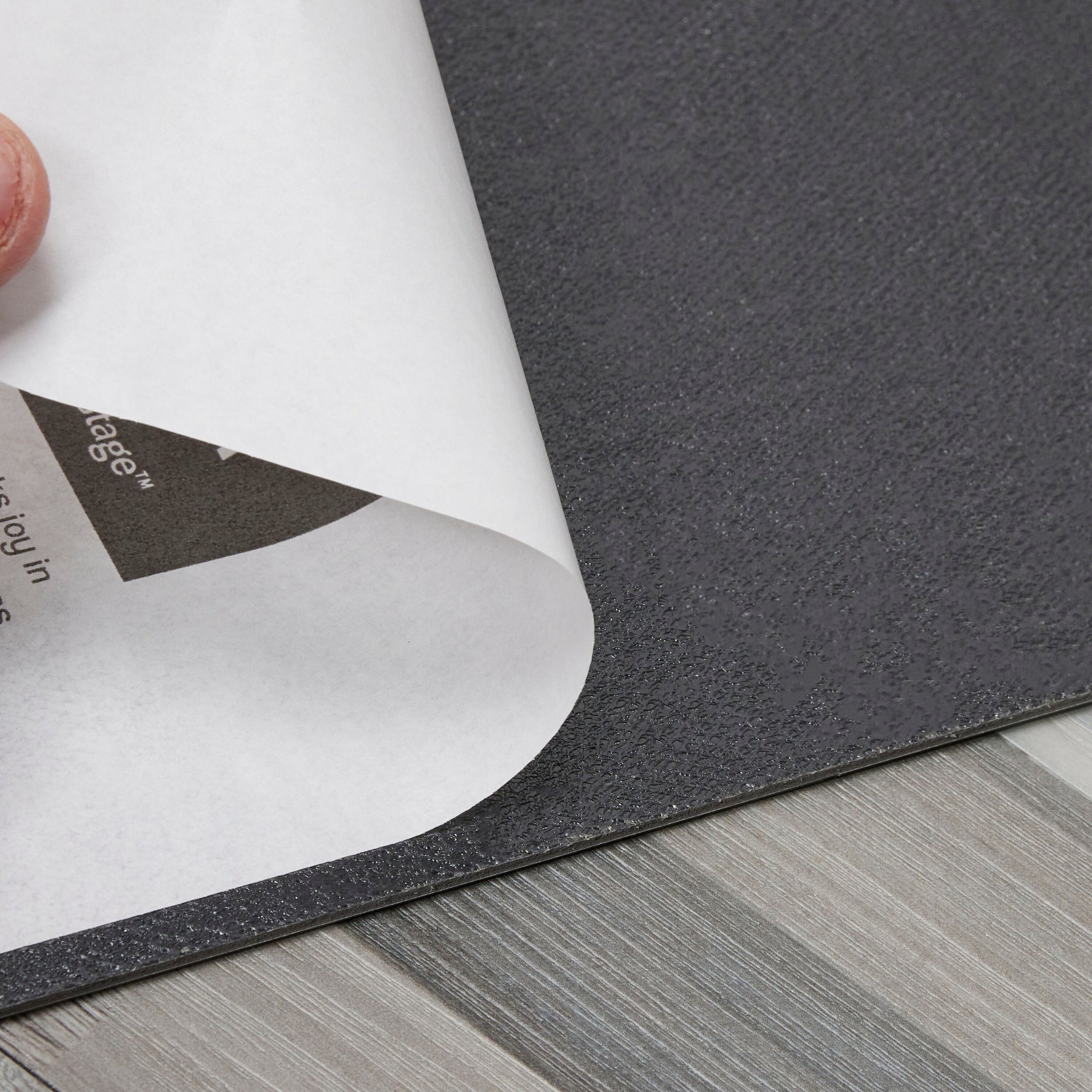 A DIY-friendly peel-and-stick luxury vinyl plank with a 12‑mil wear layer and protective urethane coating. The 6-in x 36-in planks deliver a realistic wood-look in the Quilt colorway and are 100% waterproof for versatile indoor use.