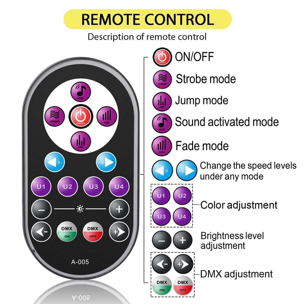 - Remote & DMX Control: Easily manage settings with a remote or integrate into DMX systems.