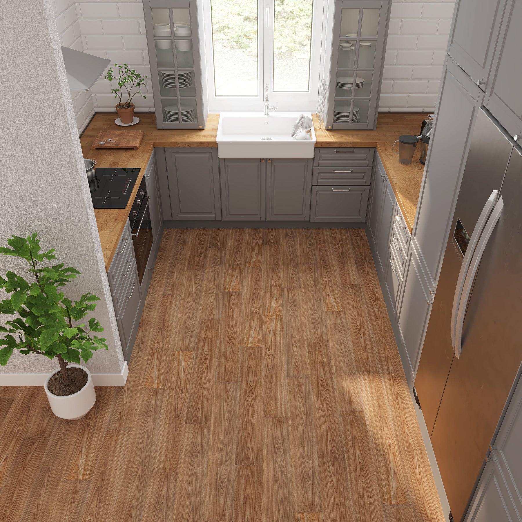 A: Yes. The vinyl planks are waterproof and suitable for moisture-prone areas like kitchens and bathrooms.