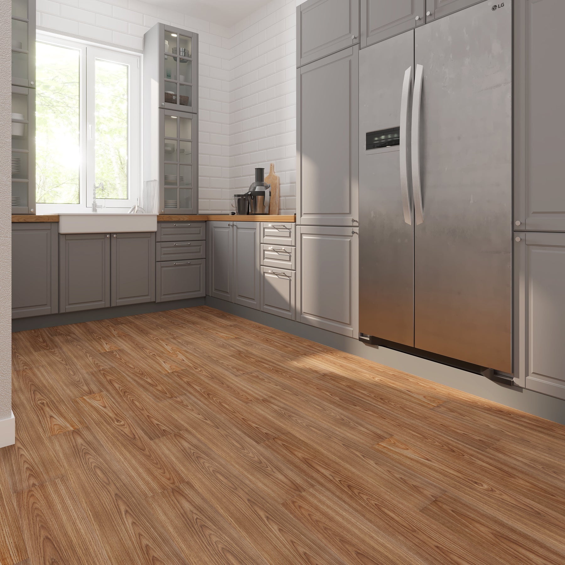BaseCore Almond lays down an inviting, honeyed wood tone that instantly warms a room. The matte, embossed grain reads sophisticated and timeless, pairing beautifully with soft grays and creamy whites. Run the planks lengthwise to elongate a galley kitchen or layer a vintage rug for a collected, modern look. It’s an easy, elevated foundation that brings everyday luxury underfoot.