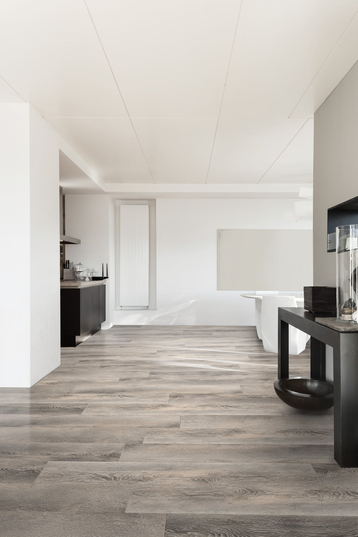 Oceanic Oak drifts through a room like a cool marine breeze—its wide, long planks elongate the space with a sophisticated, silvery grain. The embossed-in-register texture feels luxuriously authentic, while the serene gray palette pairs effortlessly with crisp whites and matte black accents. Try it beneath sculptural seating and warm oak cabinetry to create layered depth. It’s a polished foundation that makes everyday living feel impeccably curated.