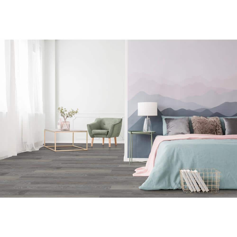 This gray-washed oak vinyl plank lays a serene foundation that instantly refines a room. The subtle knots and linear graining feel tailored yet relaxed, pairing effortlessly with airy textiles and brushed metals. Run the planks the length of a space to elongate sightlines, then layer tonal rugs for depth. It’s a chic, low-maintenance canvas for luxurious everyday living.