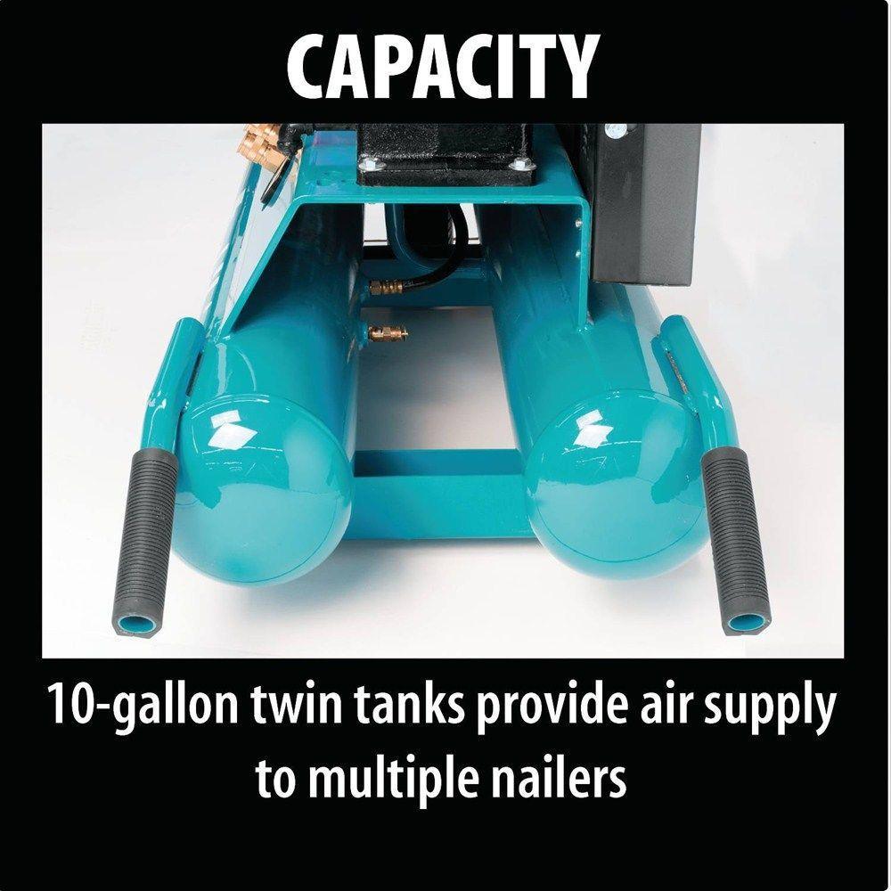• 10 Gal. twin tanks provide air supply to multiple nailers