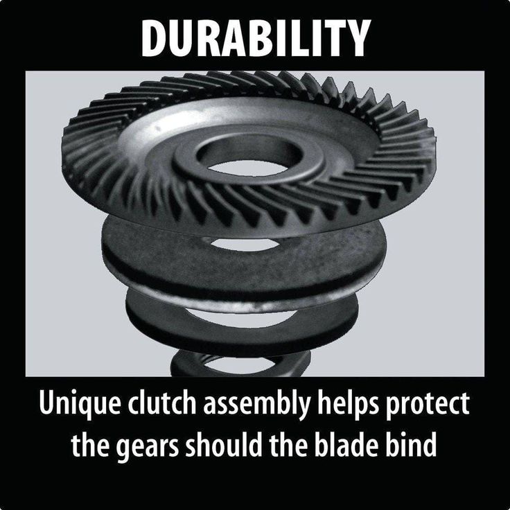 • Built-in clutch reduces gear damage by disengaging gears if blade binds