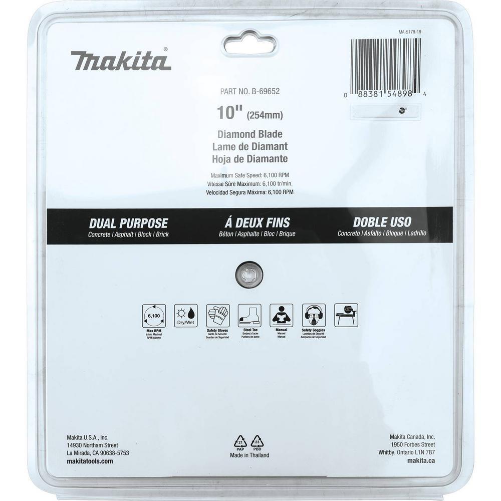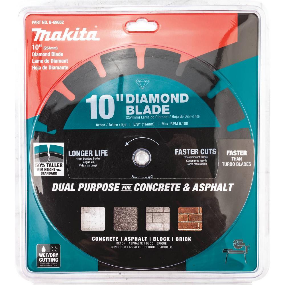 Makita Diamond Blades are designed to be used with power cut saws for making cuts in a variety of masonry materials. The high-quality steel core is expertly tensioned for true cuts and added durability. Each blade features the highest quality diamonds and the segments are laser welded for added durability and improved cutting efficiency.