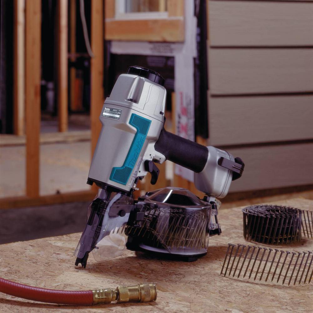 The Makita 5007MG 7-1/4 in. Magnesium Circular Saw features highly durable magnesium components and a powerful 15 AMP Makita-built industrial motor. The 5007MG seamlessly balances weight, power, durability and ease of use, making it the most refined circular saw on the market. A built-in dust blower clears the line of cut for more accurate and precise cuts. The 5007MG is built for framing walls, floors and roofs using a range of dimensional lumber and dense engineered lumber, including LVL, PSL and I-Joists, headers and microlams; as well as ripping panels such as plywood, OSB, particle board and dense structural panels. Other applications include plunge and bevel cutting. The 5007MG includes a Makita 7-1/4 In. Premium Ultra-Coated Framing Blade with Advance Tooth Design. The "M" shaped tooth design features a 2-pointed tip and two 10° bevel face to maximize cutting performance for a faster, cleaner and longer lasting cut. The carbide tips are specifically set to withstand the harshest conditions such as plowing through nail-embedded wood. The blade is also ultra-coated to reduce heat and pitch build-up for faster, smoother cutting, with special Makita heat vents strategically set to dissipate heat and increase performance. This Promotion also comes with a bonus AN611 2-1/2 in. Siding Coil Nailer.