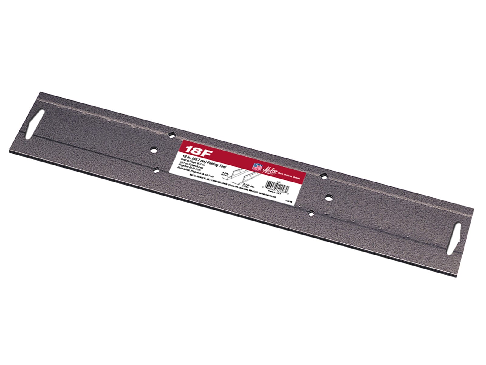 This Malco 18F folding tool forms clean hems, pans, and drive edges in flashing and sheet metal. Built from two permanently joined steel halves with sight holes for precise depth alignment, it delivers uniform folds for reliable metalwork.