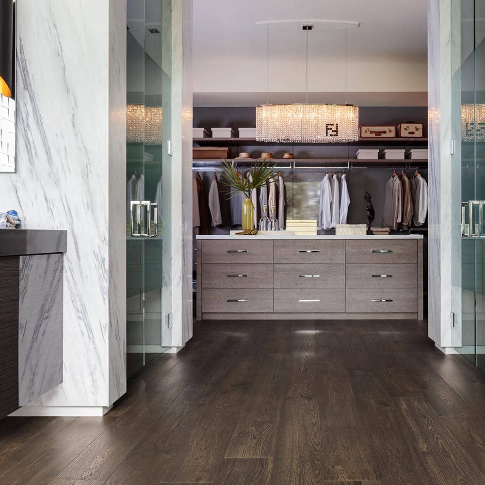 The Malibu Wide Plank Bodega French Oak flooring exudes timeless elegance, inviting you into a space of warmth and character with its rich, wire-brushed texture. Its wide planks showcase the natural beauty of the French oak, offering a foundation that complements both rustic and modern aesthetics. Imagine the understated opulence this flooring brings to a kitchen or living room, beautifully pairing with sleek metal fixtures or cozy textiles. Its presence in a room is not merely as a component but as an integral piece of sophisticated, luxurious living.
