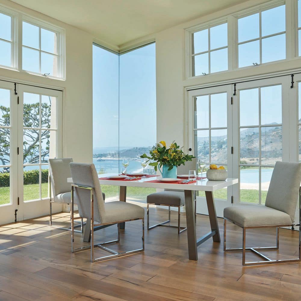 A: Yes, the wire-brushed, low-gloss surface is both dent and scratch-resistant, making it suitable for homes with pets and children.