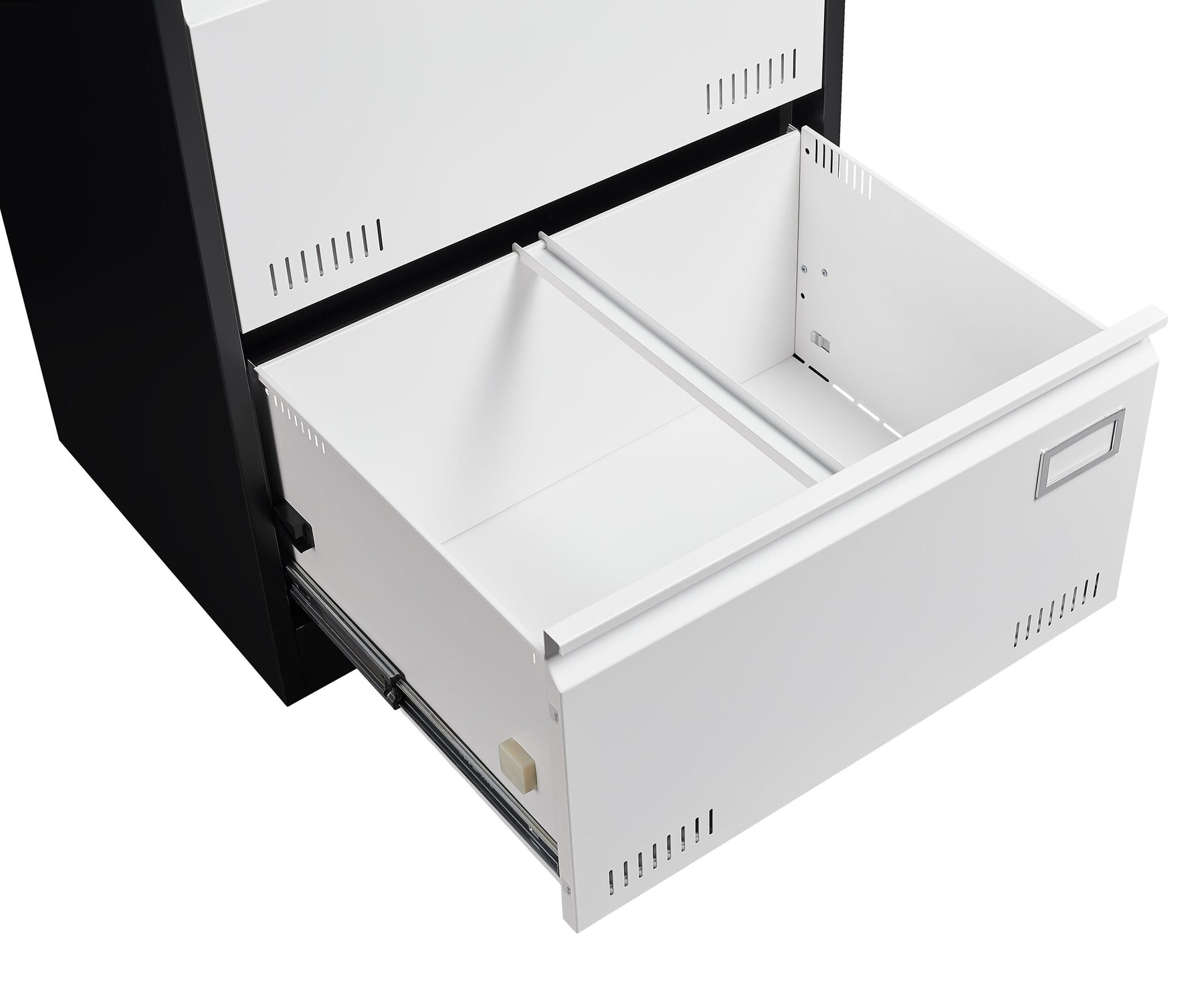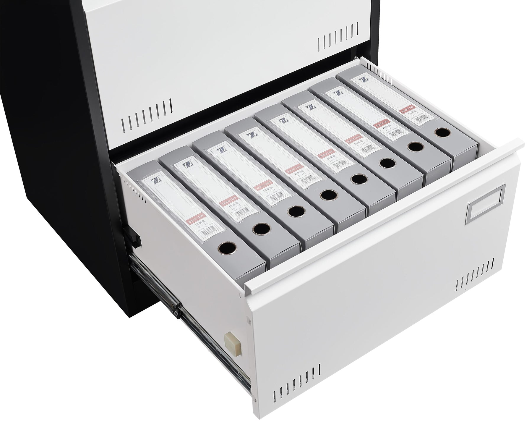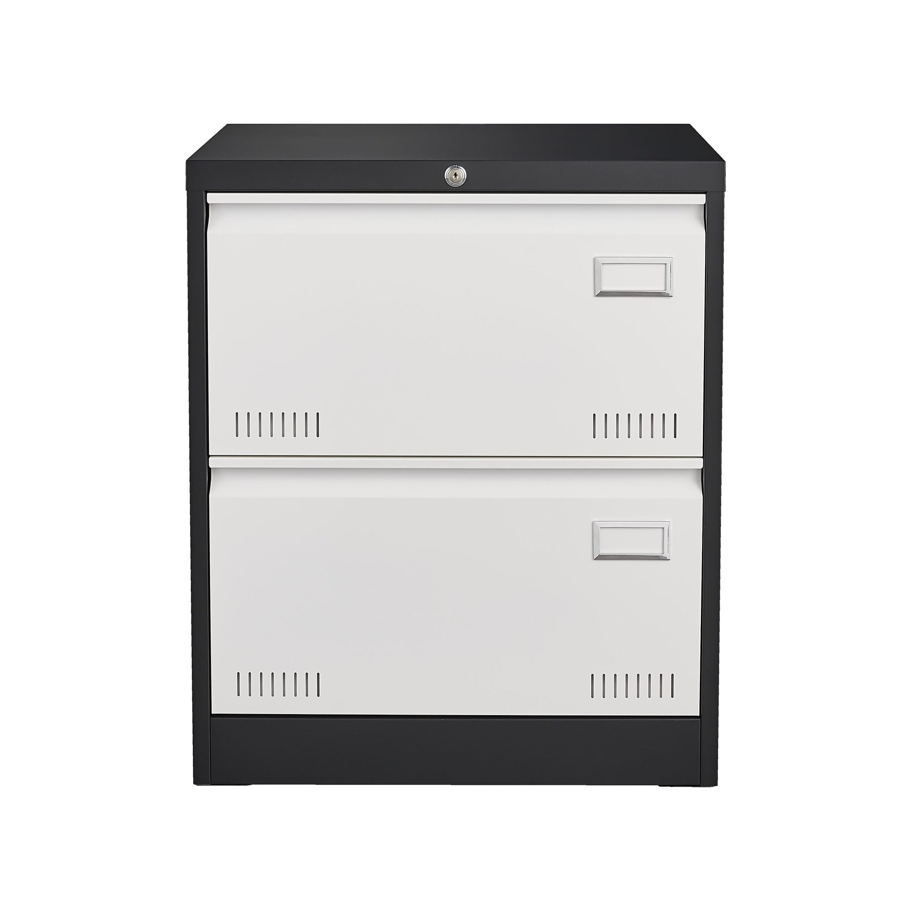 Transform your office space with the sleek Maocao Hoom Black+White File Cabinet. Expertly designed for modern workspaces, this cabinet features a robust metal construction with a striking black and white finish. Its spacious design effortlessly accommodates all your important files while enhancing the aesthetic appeal of your workspace.