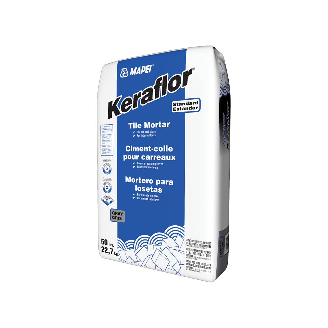 Keraflor is a dry-set, standard tile mortar designed for interior residential and light commercial floors. In gray, this versatile thin-set provides reliable adhesion for tile and stone installations.