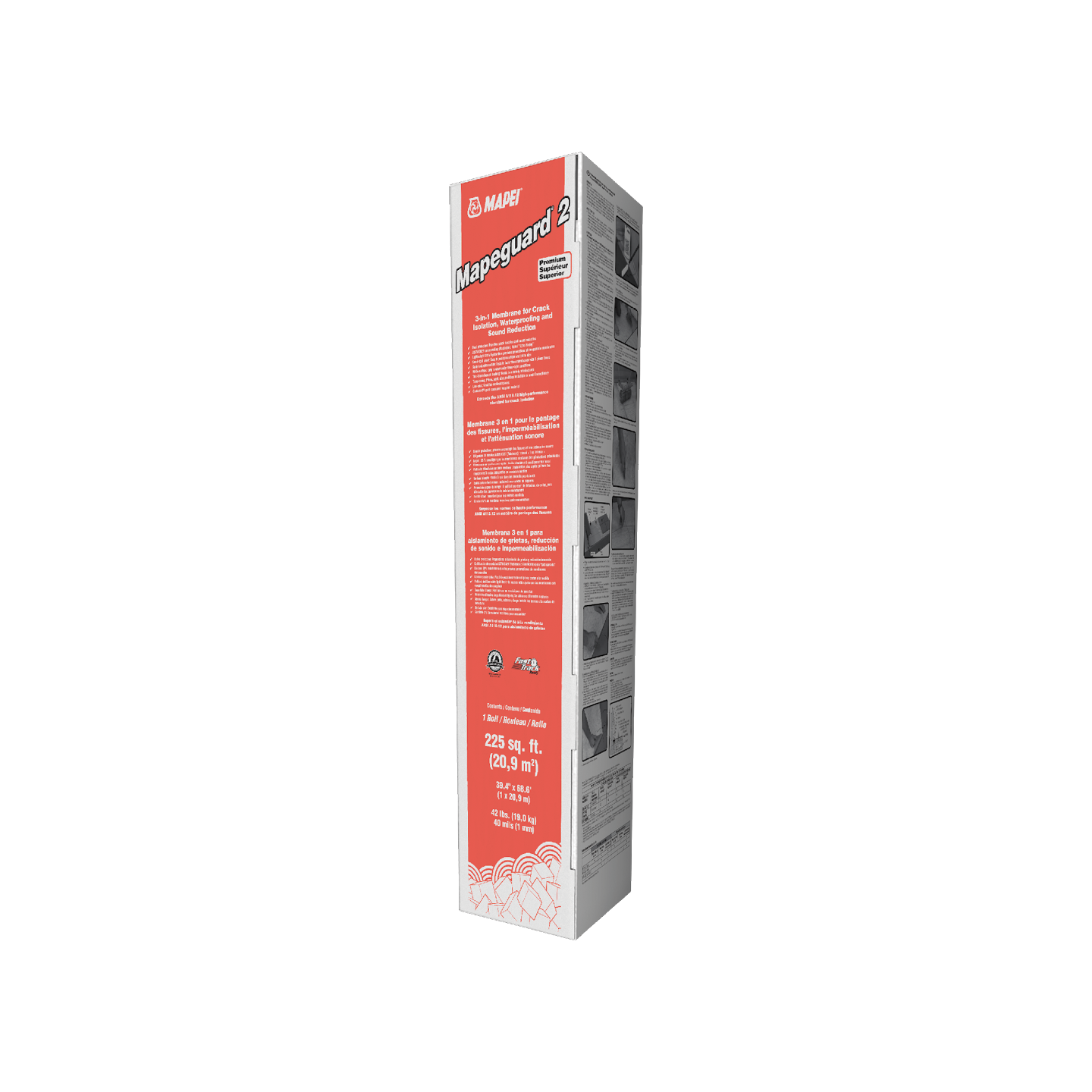 Mapeguard 2 is a next-generation 40-mil, fabric-reinforced peel-and-stick membrane that provides crack isolation, waterproofing, and sound reduction under tile, stone, and wood flooring. This lightweight, load-bearing underlayment helps prevent in-plane floor cracks up to 3/8 in. from telegraphing and reduces impact and airborne sound transmission.