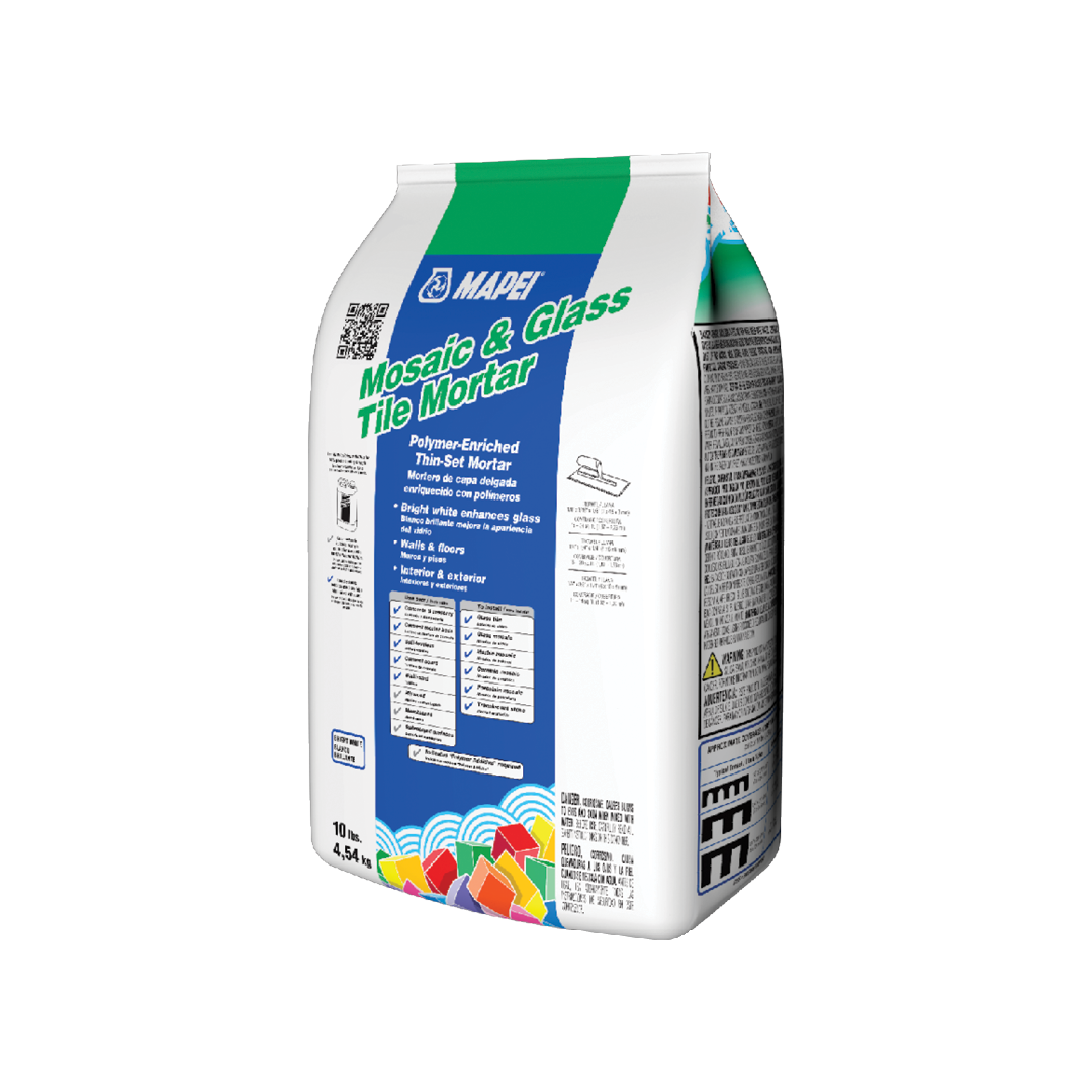 Choose MAPEI’s bright white Mosaic & Glass Tile Mortar for secure, luminous installations that look flawless and last.