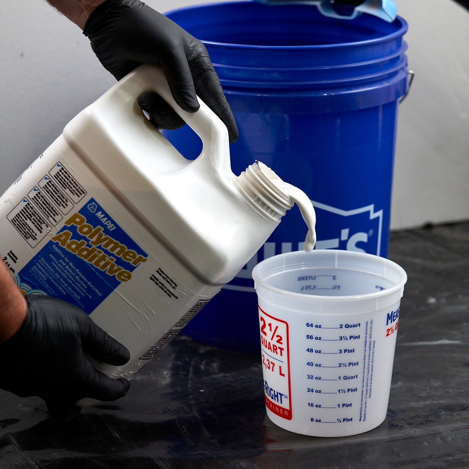 A: Mix the liquid additive into the mortar per the manufacturer’s instructions in place of water to achieve enhanced performance.