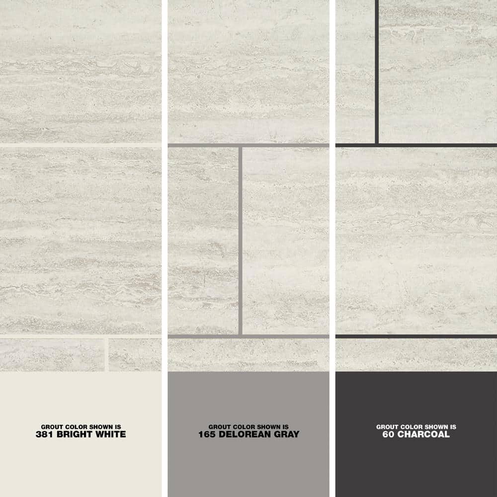 • Large-Format Ease: 12 in. x 24 in. pressed-edge tiles; suggested 3/16 in. grout line.