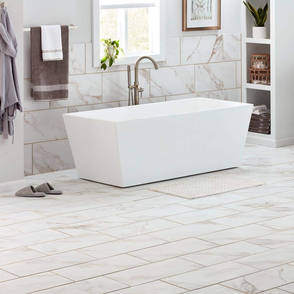 • Marble-Look Elegance: Calacatta Gold design brings timeless luxury to floors, walls, and backsplashes