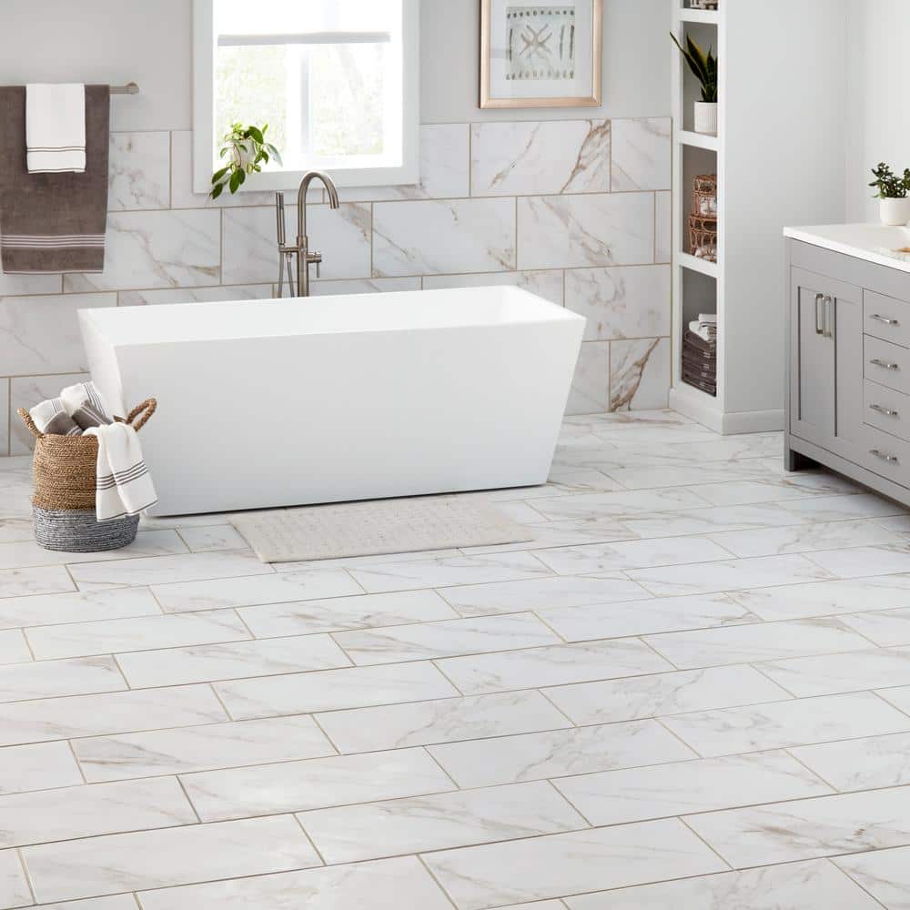 Bring timeless Calacatta elegance home—add this durable, waterproof porcelain tile to your project today.