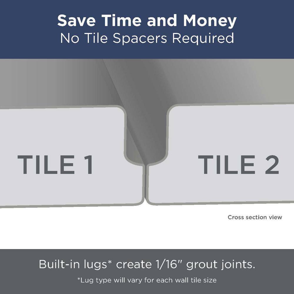 - Easy Installation: Built-in lugs create 1/16 in. grout joints—no spacers required