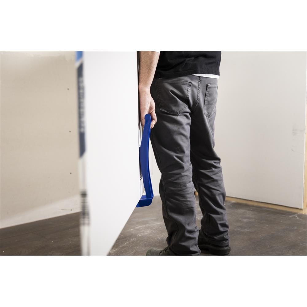 This streamlined panel carrier brings a crisp, utilitarian silhouette to the jobsite, turning bulky drywall into a graceful, one-hand maneuver. The impact-resistant blue plastic and knuckle-clear handle create a confident, ergonomic grip. Style it as part of a curated toolkit—hung within reach for quick grabs between cuts and installs. Consider it an essential instrument for polished, efficient, and luxurious project execution.