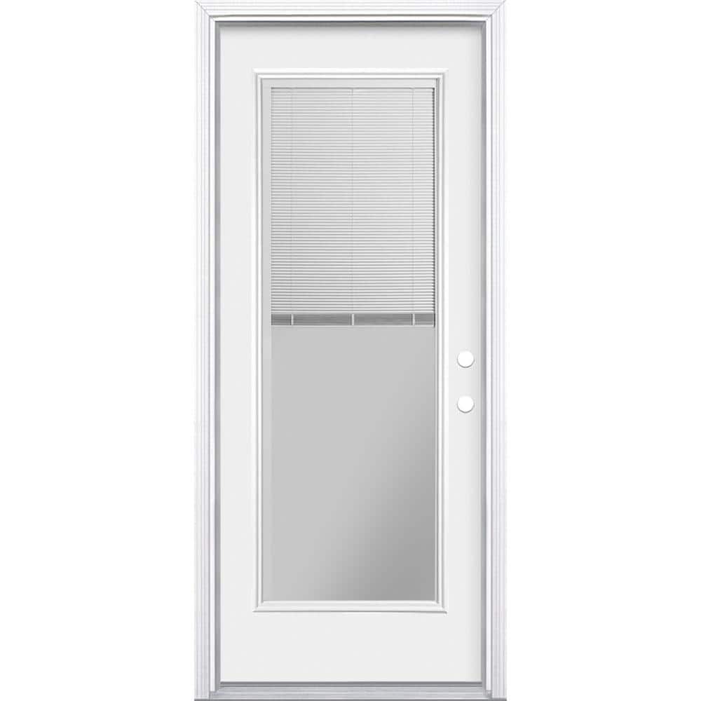 Masonite 32 in. x 80 in. Premium Full Lite Left-Hand Inswing Mini Blind Primed Steel Prehung Exterior Front Door with Brickmold
