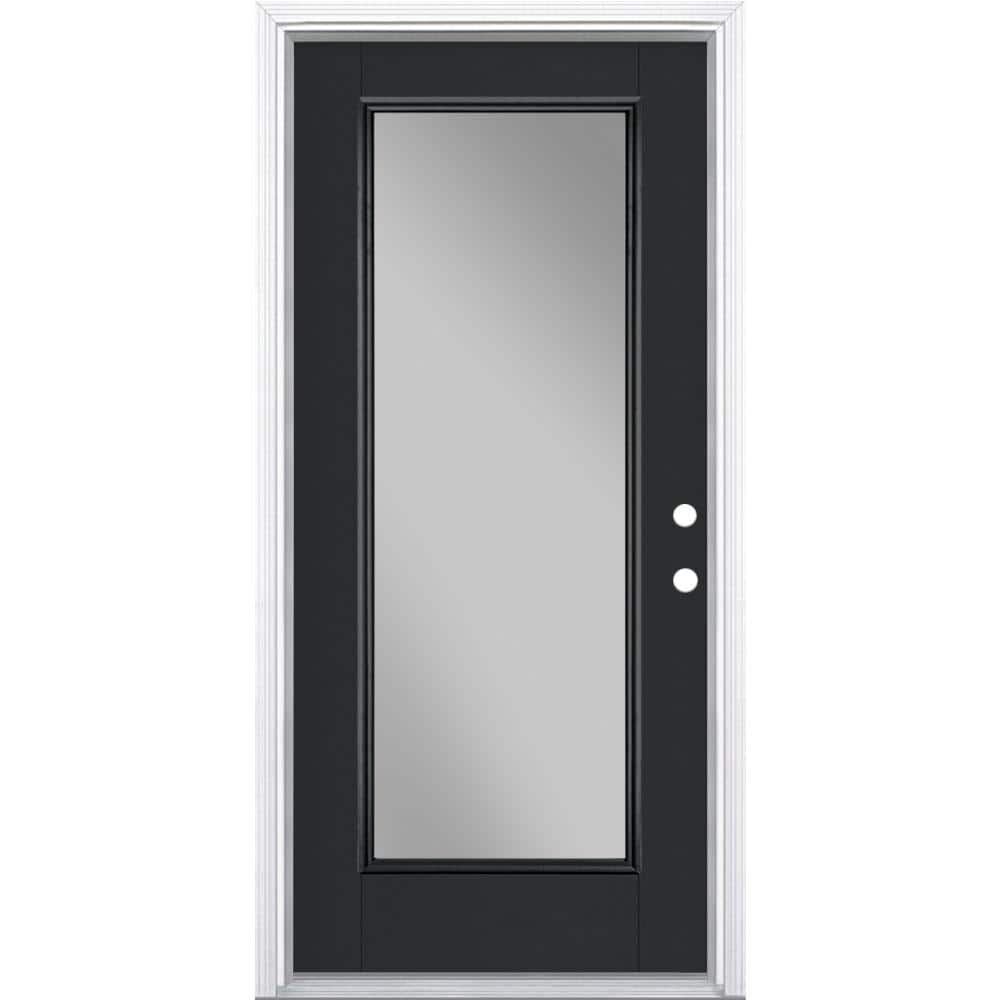 Masonite 36 in. x 80 in. Full Lite Jet Black Left Hand Inswing Painted Smooth Fiberglass Prehung Front Exterior Door with Brickmold