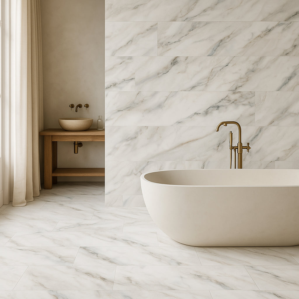 The Celeste Azul Porcelain Tile offers a sophisticated stone-look design in a durable porcelain material. With its matte finish and waterproof properties, this tile is perfect for high-traffic areas and versatile installations, including floors, walls, and even shower surfaces.
