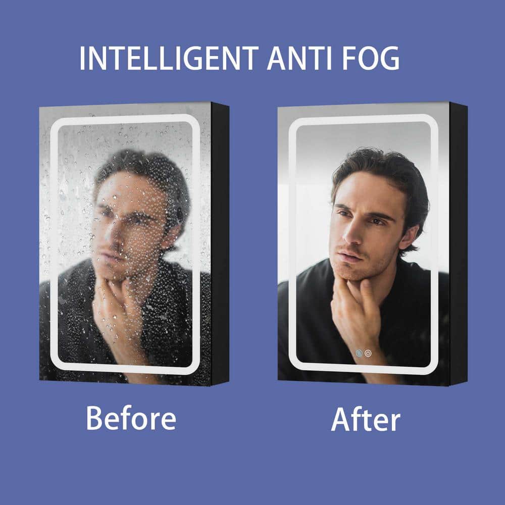 Elevate your bathroom with this sleek LED Black Aluminum Medicine Cabinet, featuring a reversible mirror and adjustable lighting. Its IP44-rated waterproof design ensures long-lasting durability and safety, while the innovative defogging feature keeps your mirror clear and ready to use. Perfect for both recessed and surface mounting options.
