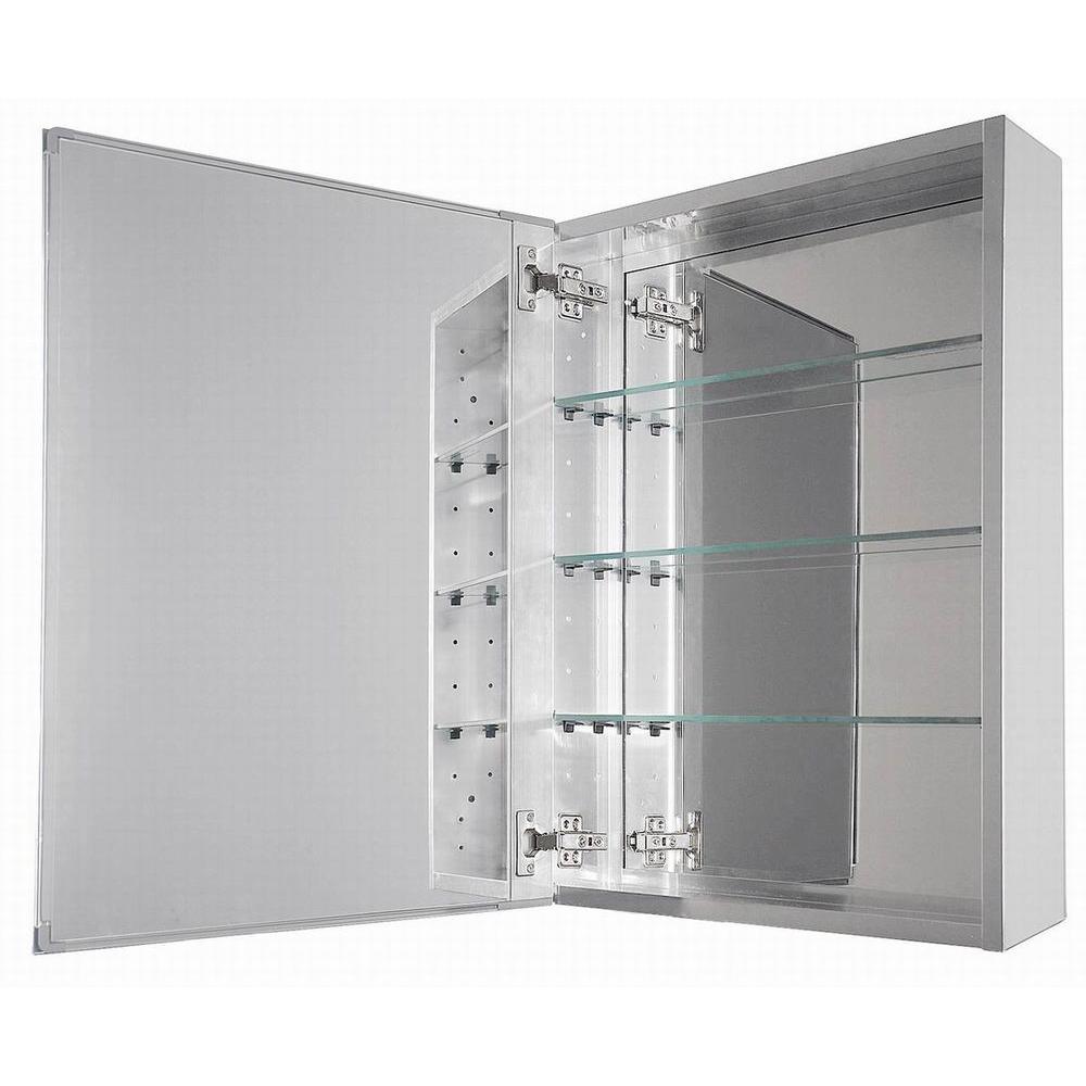 Sleek and sharp, the Glacier Bay 15 in. x 26 in. Decor Medicine Cabinet in Silver has a rust-free aluminum case and mirror back with a silver frame and is ideal for a variety of bathroom decor. As functional as it is stylish, this cabinet opens almost flush to the wall and has 3 adjustable glass shelves for plenty of storage and a mirror on the front, on the inside and on the side. Easy to install with a hanging kit included, this cabinet can either be recessed or surface mounted and will provide years of use and enjoyment. Limited Lifetime Warranty.