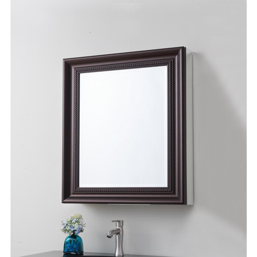 The 24 in. x 30 in. Cabinet has a deco framed door in oil rubbed bronze. Inside the adjustable glass shelves hold all your toiletries and bath items. Our rust-free aluminum construction with mirror back ensures years of use.