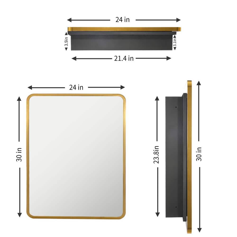 24 in. W x 30 in. H Rectangular Small Gold Metal Frame Wall mount or Recessed Bathroom Medicine Cabinet with Mirror