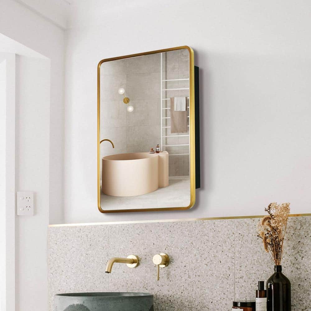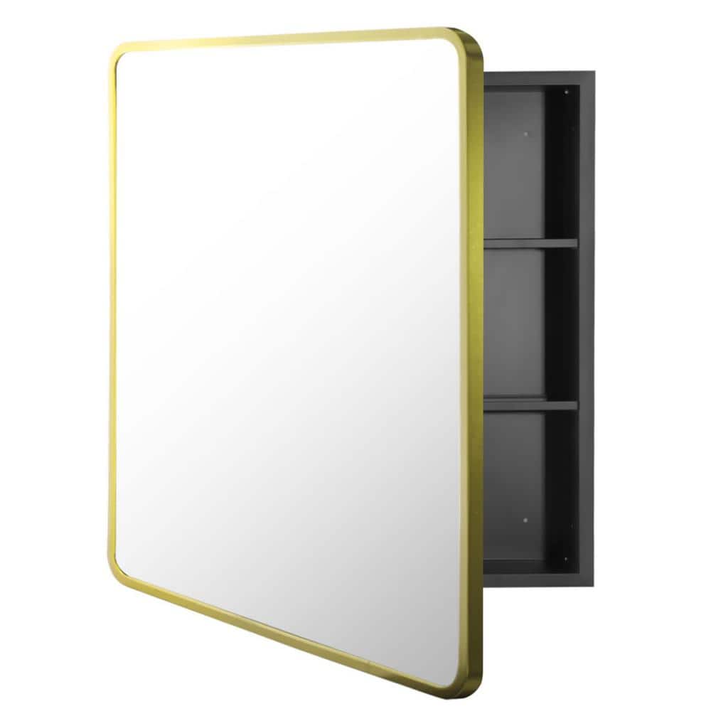 Transform your bathroom with timeless elegance and practical storage by adding this Gold Metal Framed Medicine Cabinet to your cart today!