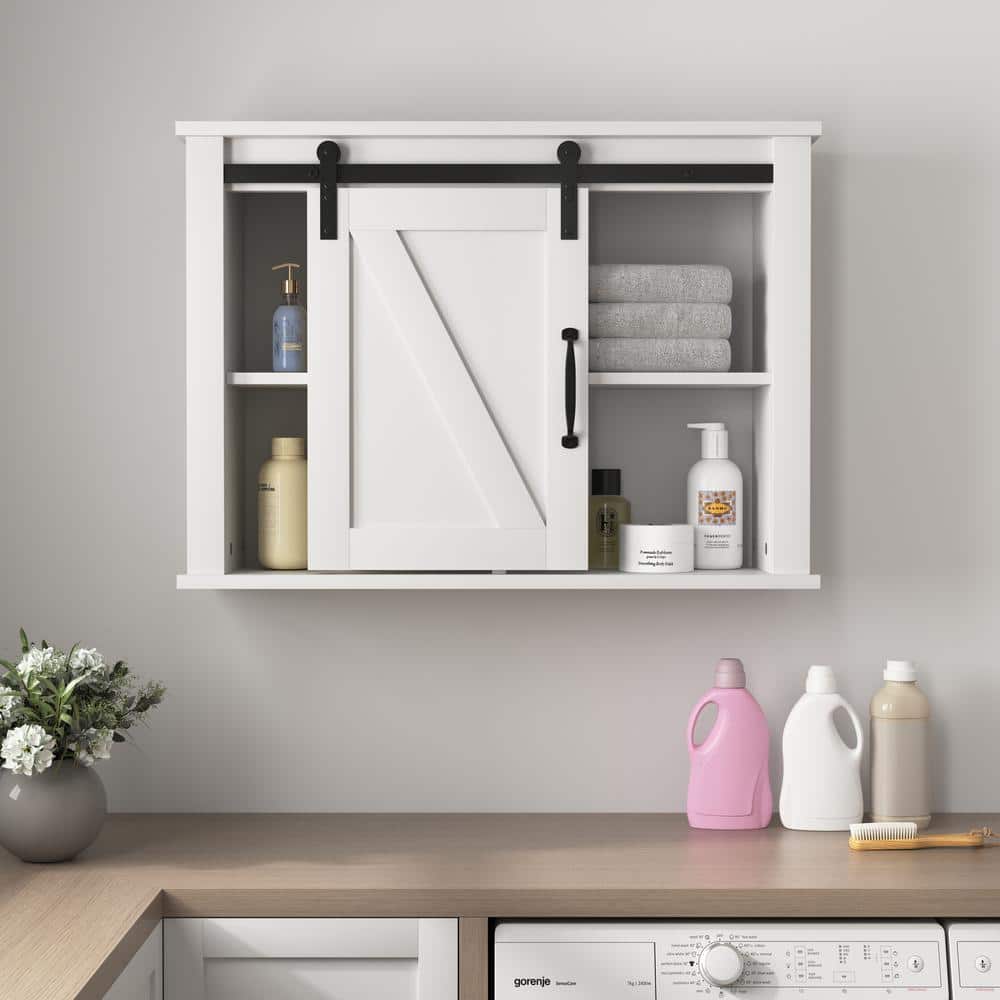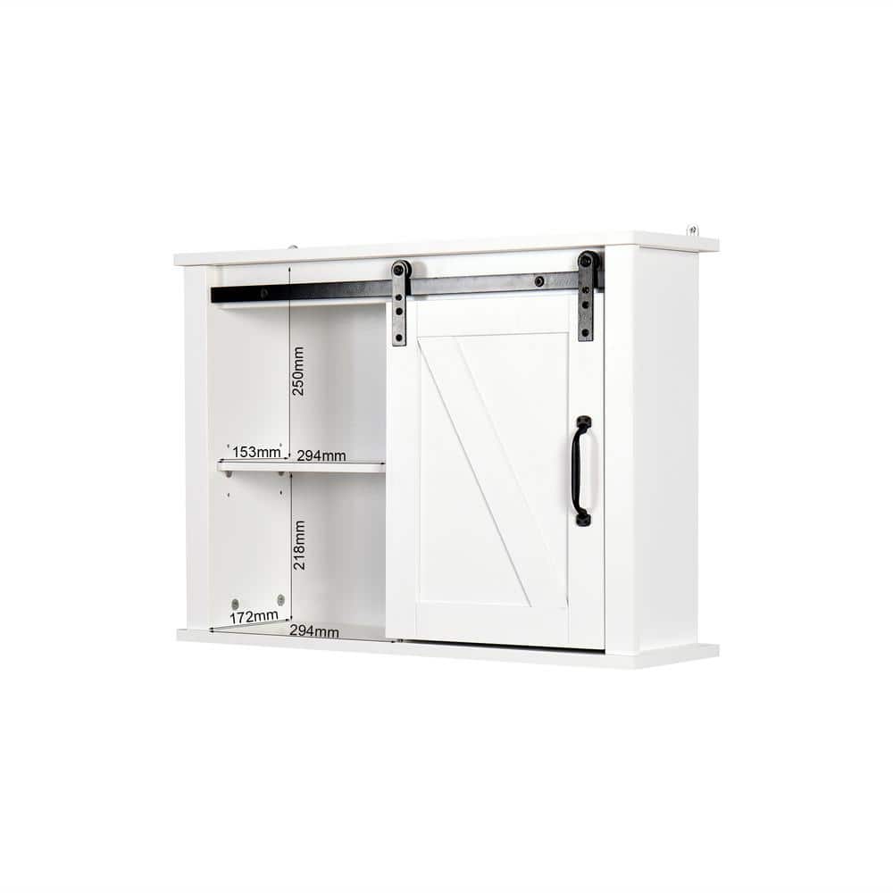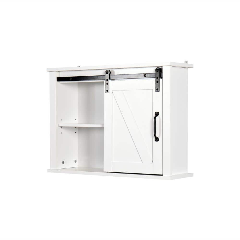 27-in W x 7.8-in D x 20-in H in MDF Ready to Assemble Wall Bathroom Medicine Cabinet in White with Sliding Barn Door