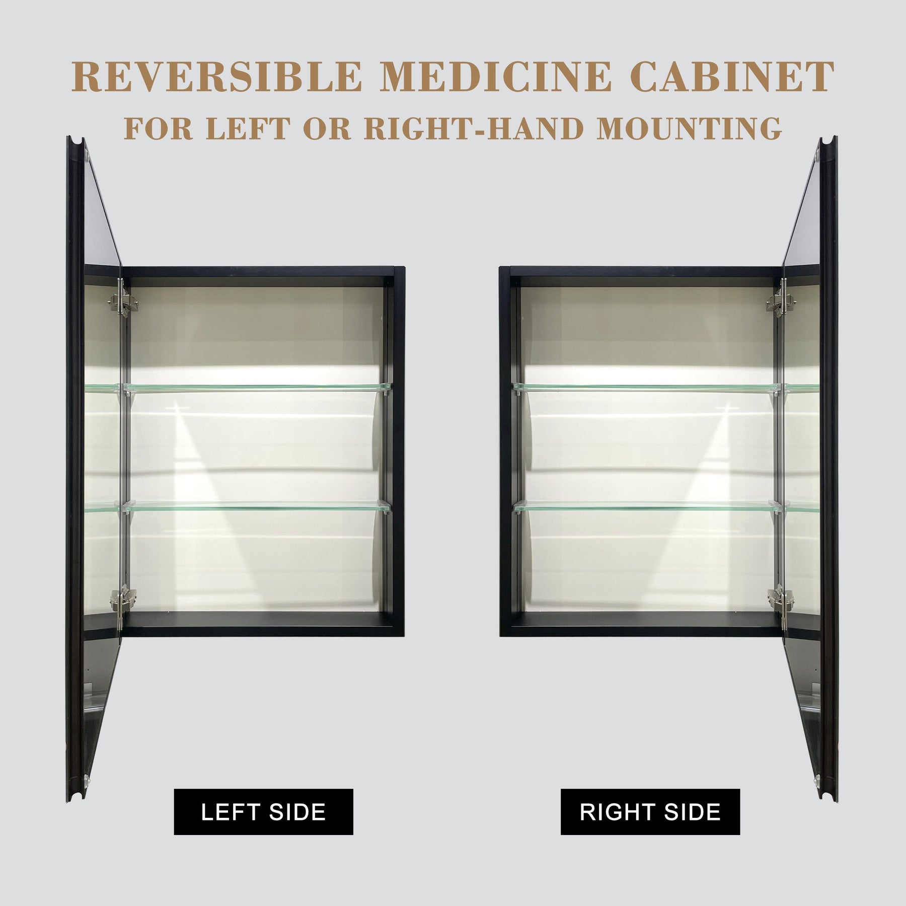 A: The cabinet features a reversible door, allowing for either left or right-hand swing direction to suit your space.