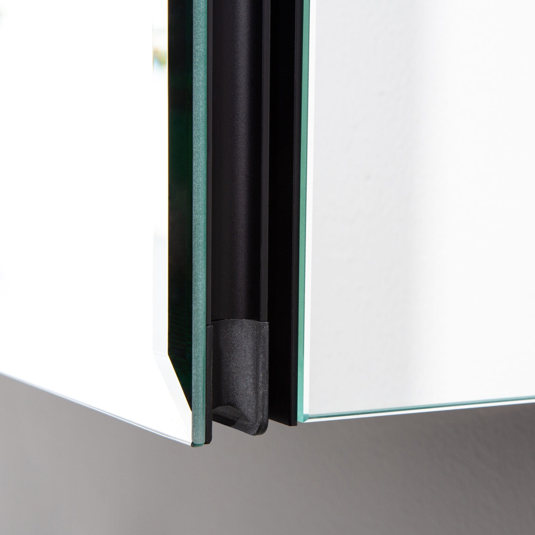 A: No, the mirror is frameless and polished without beveled edges, creating a more contemporary look.