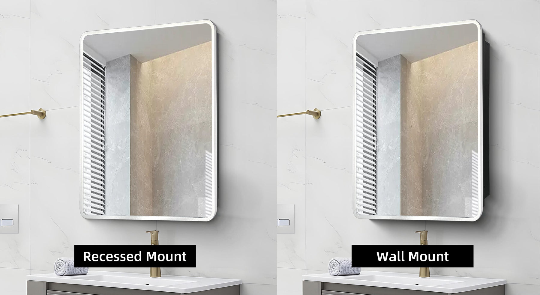 - Installation Options: Surface or recessed mounting for flexible bathroom designs.