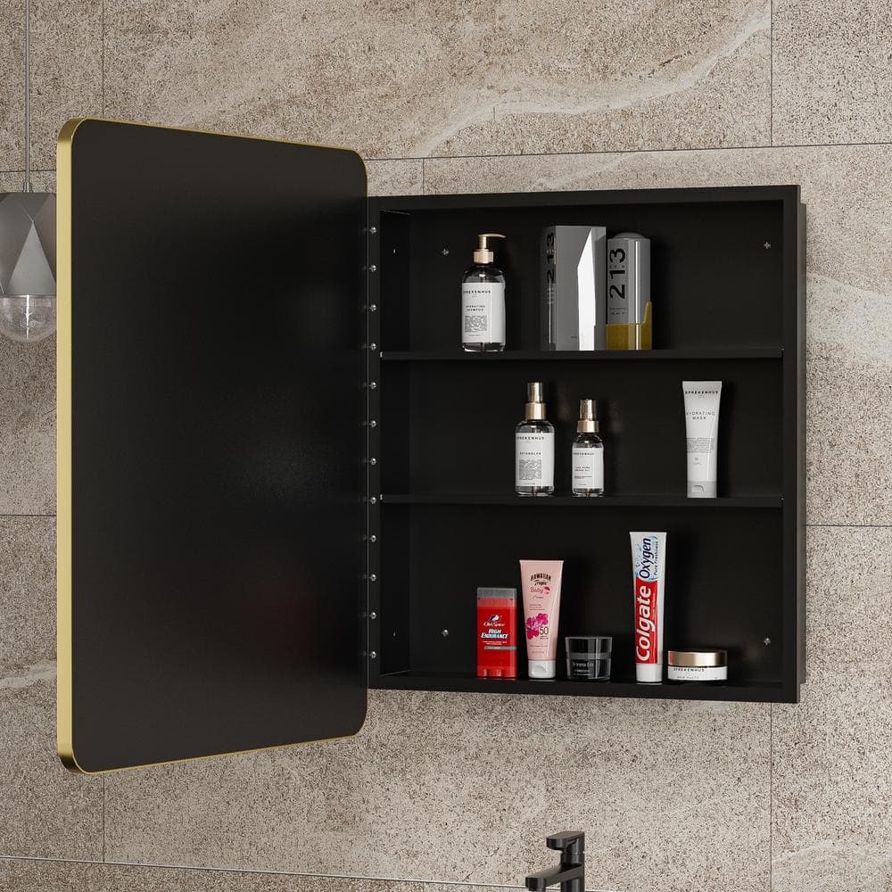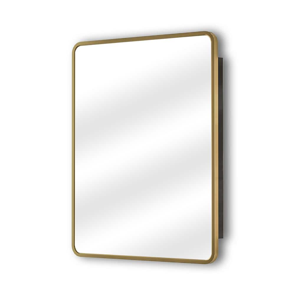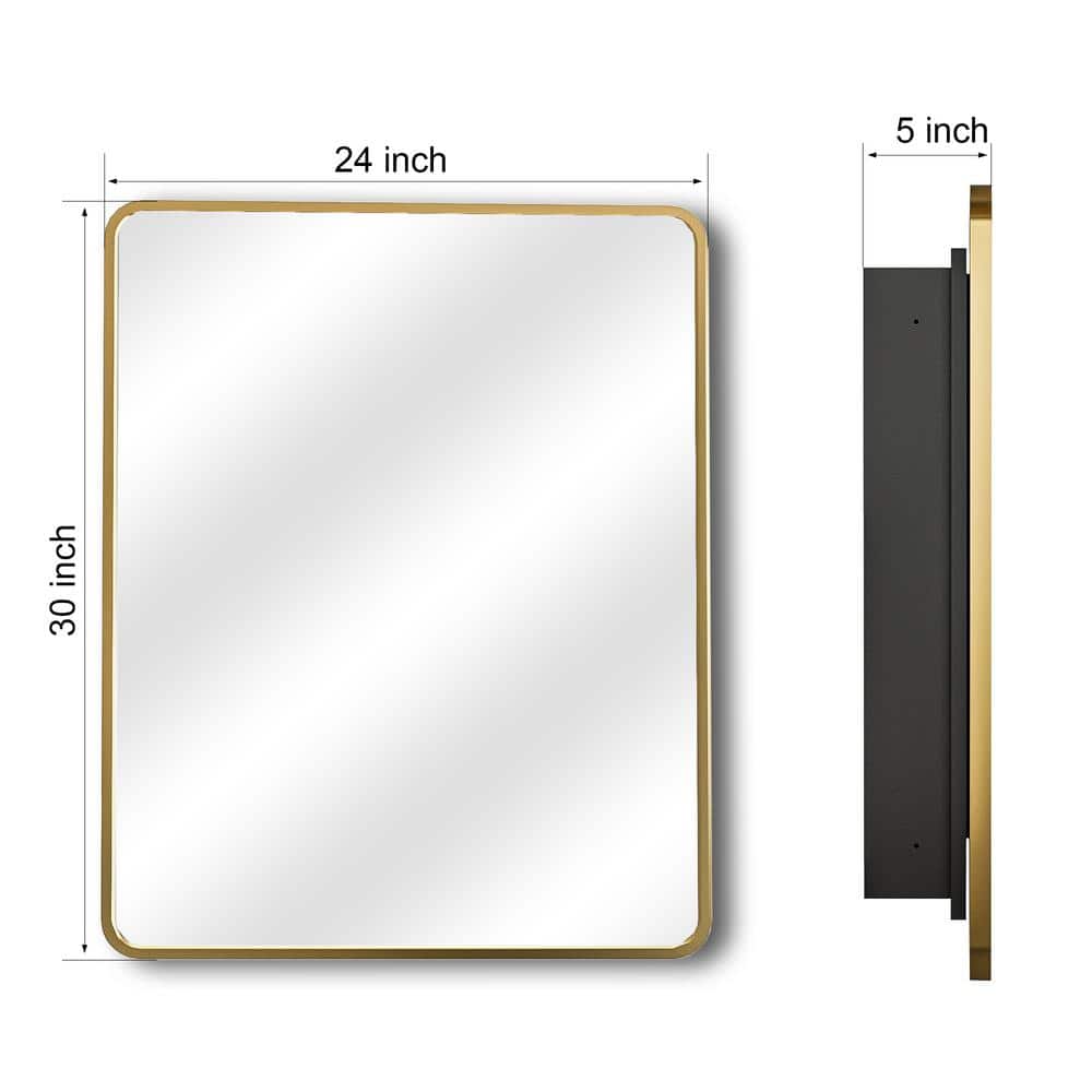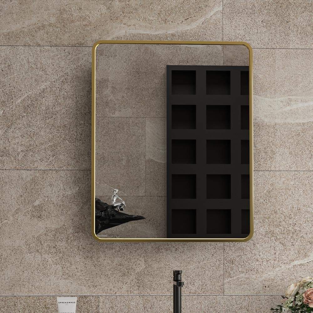 Aosspy 24 in. W x 30 in. H Medium Rectangular Gold Aluminum Alloy Framed Recessed/Surface Mount Medicine Cabinet with Mirror