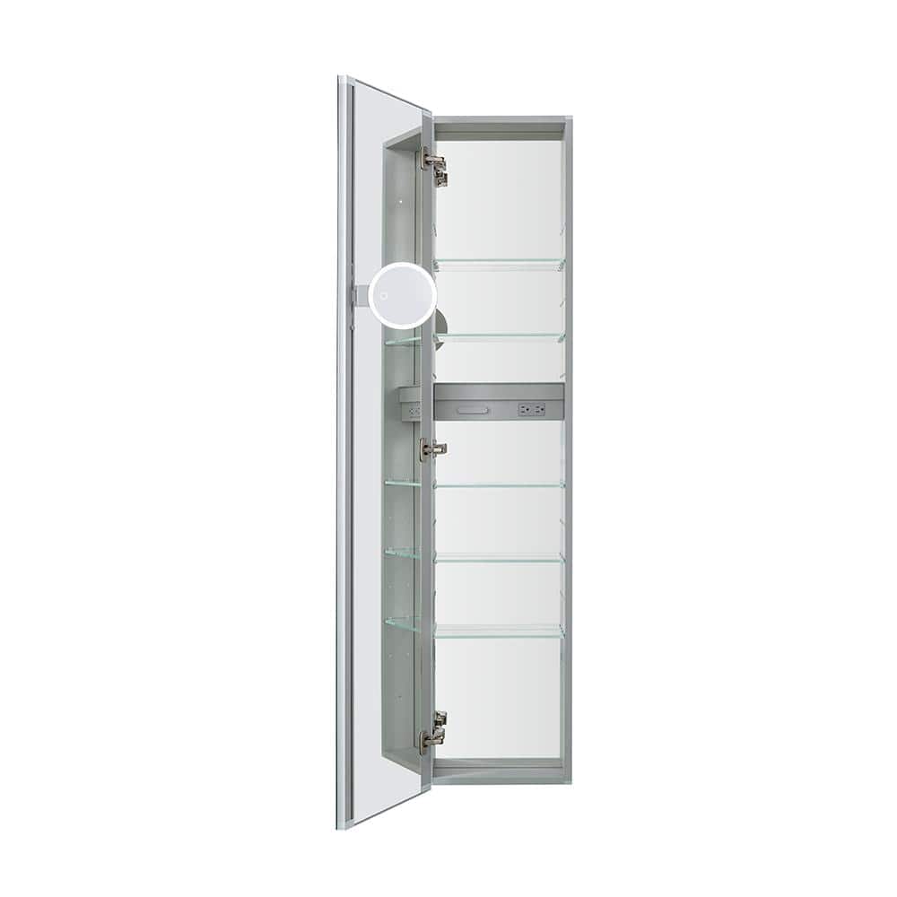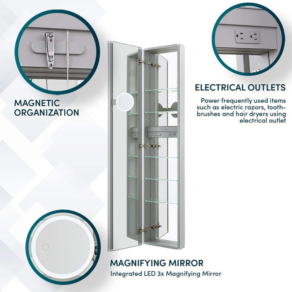 Aquadom Royale 15 in. W x 70 in. H Rectangular Medicine Cabinet with Mirror Defogger, Removable 3X Magnifying Mirror, Left Hinge