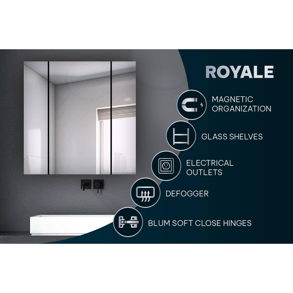 The Aquadom Royale Medicine Cabinet offers sophisticated elegance combined with practical functionality for a sleek bathroom upgrade. Featuring a built-in mirror defogger, adjustable glass shelves, and a removable 3X magnifying mirror, this cabinet seamlessly merges modern technology with classic style. Enjoy the added convenience of built-in electrical outlets and gentle Blum soft close hinges for a touch of everyday luxury.
