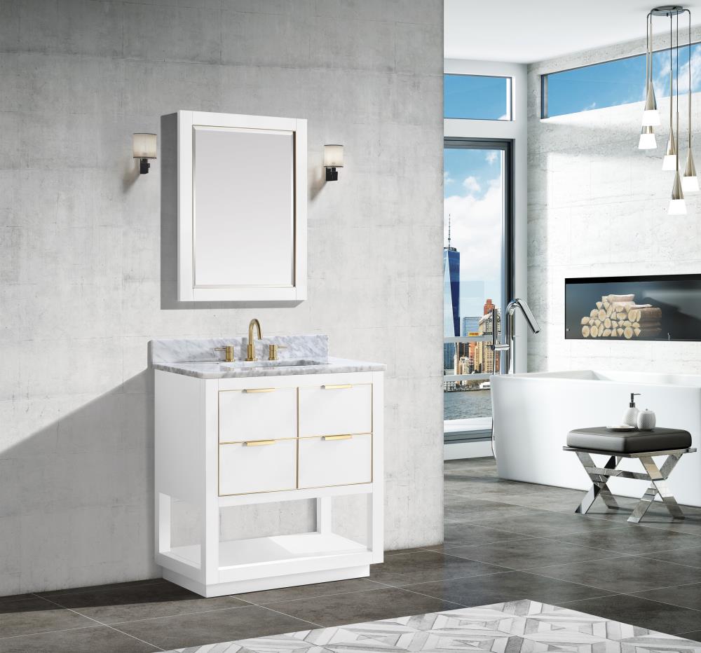Transform your bathroom into a serene sanctuary with the Avanity Allie/Austen Medicine Cabinet, where sleek design meets high functionality. The sophisticated matte gold trim contrasting against the white finish lends an understated glam to any space. Seamlessly integrate this cabinet into your wall to enhance light reflection and open up your bathroom space. It's a quintessential piece that combines beauty, practicality, and luxury, making everyday routines feel elevated.