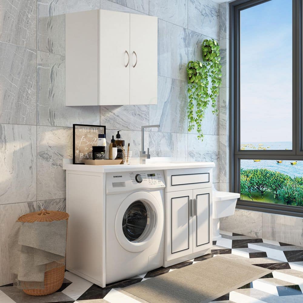 A: Yes, the cabinet's minimalist design allows it to be used in kitchens, laundry rooms, garages, and other spaces.