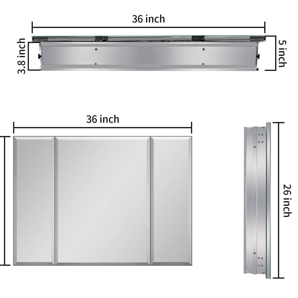 Boosicavelly 36 in. W x 26 in. H Rectangular Aluminum Medicine Cabinet with Mirror