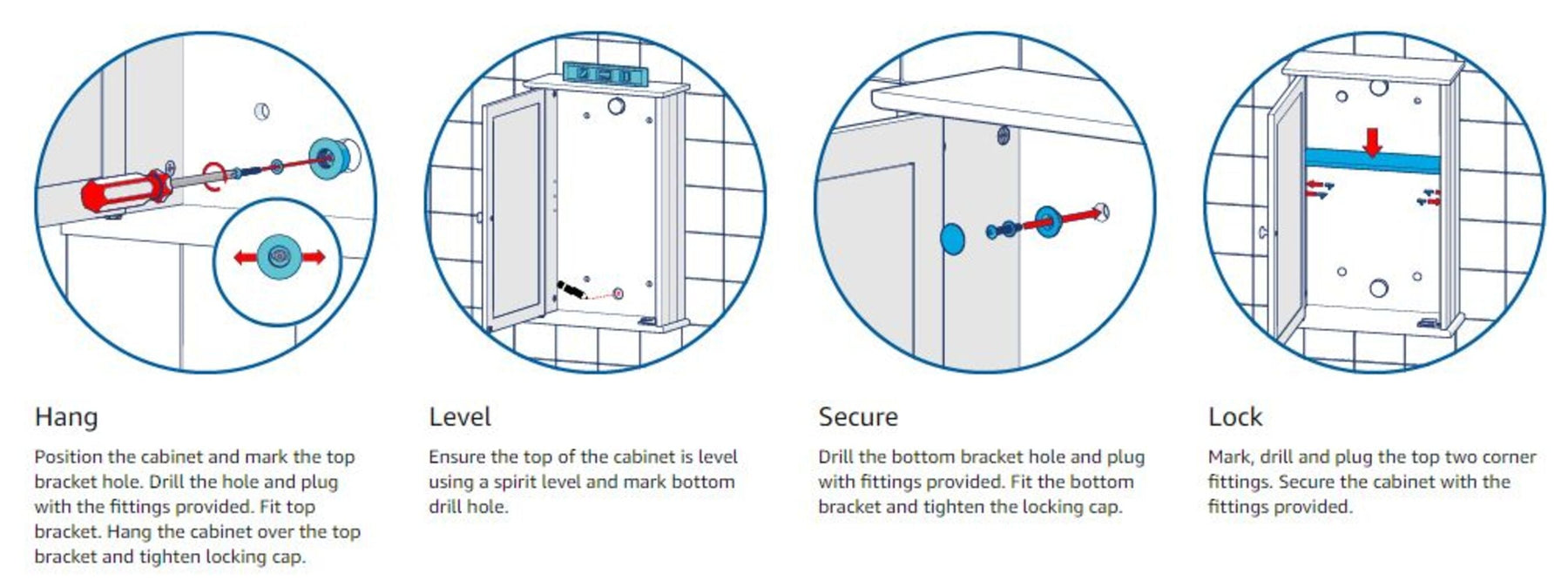 A: The medicine cabinet comes with a unique Croydex wall mounting bracket for easy installation and adjustment. It includes all necessary mounting hardware and simple instructions.