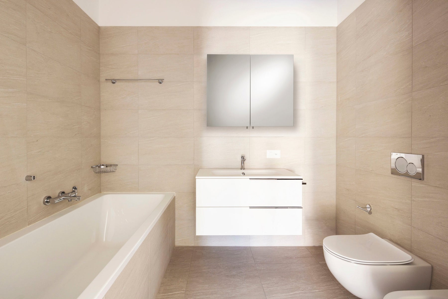The Croydex 31.5-in x 26-in Surface Mount Mirrored Medicine Cabinet seamlessly combines style with functionality. Crafted from high-quality steel, this cabinet provides durable, accessible storage, complete with a patented Flexi Fix installation system for easy setup. A sleek white finish and frameless design make it the perfect addition to modern bathroom decor.